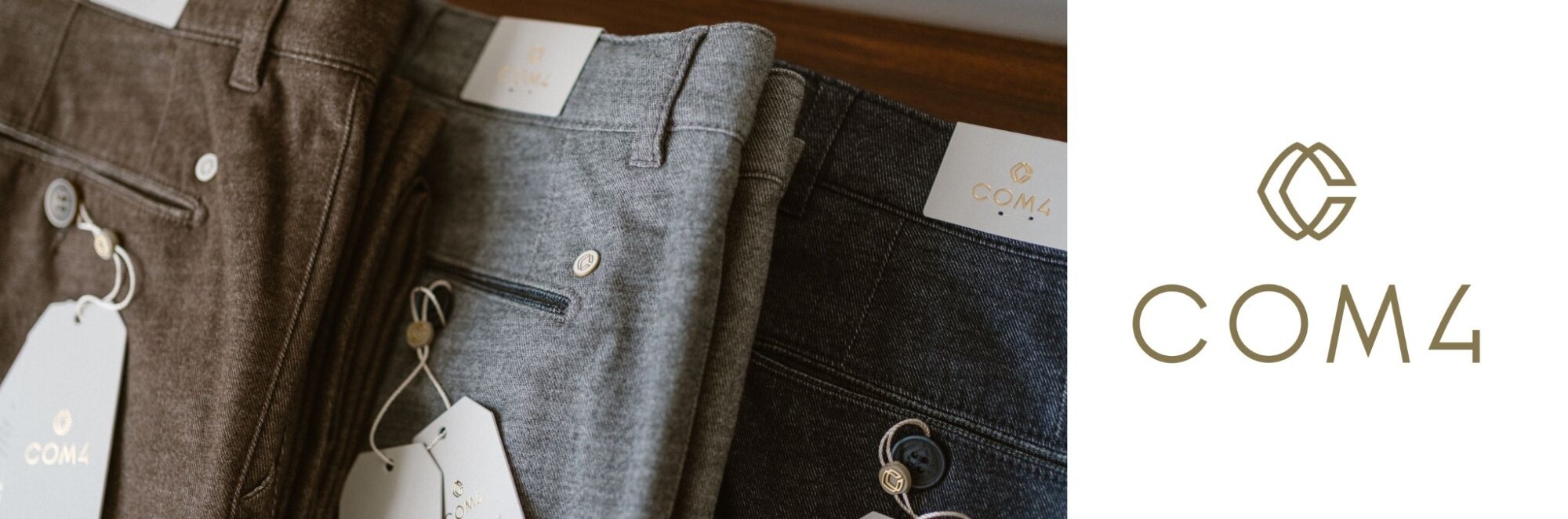 Achter Com4 bevindt zich het modebewuste team van Comeback Fashion Group. Hun missie is om broeken te ontwerpen die zowel comfortabel als stijlvol zijn, afgestemd op de moderne man. De broeken worden geproduceerd in Roemenië. De hoogwaardige stoffen komen uit weverijen in Italië, Duitsland, Turkije en Portugal. Door de volledige controle over het productieproces is elke broek een combinatie van comfort en kwaliteit.