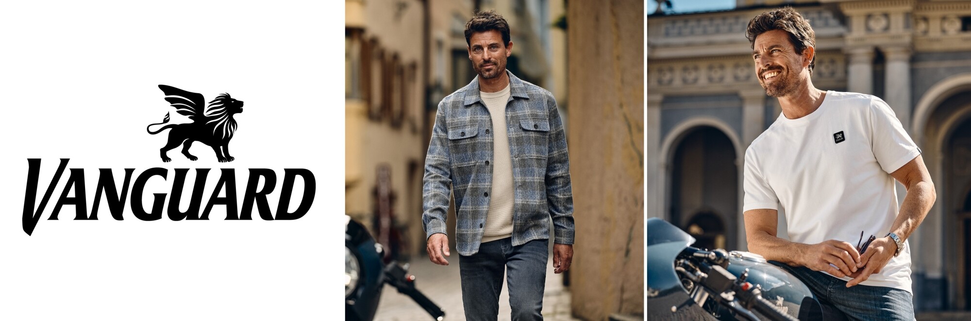 De kleding van Vanguard is geïnspireerd door motorcultuur en Italiaanse stijl. Het merk biedt kleding van robuuste kwaliteit en herkenbaar design. De ‘V’ van Vanguard, dat vaak als detail wordt teruggebracht in de collecties, is geïnspireerd op de V-cilinders van Moto Guzzi. Elk item vertelt een verhaal, of het nu een jeans is die refereert aan een Moto Guzzi motor of een jas met een custom racer vibe.