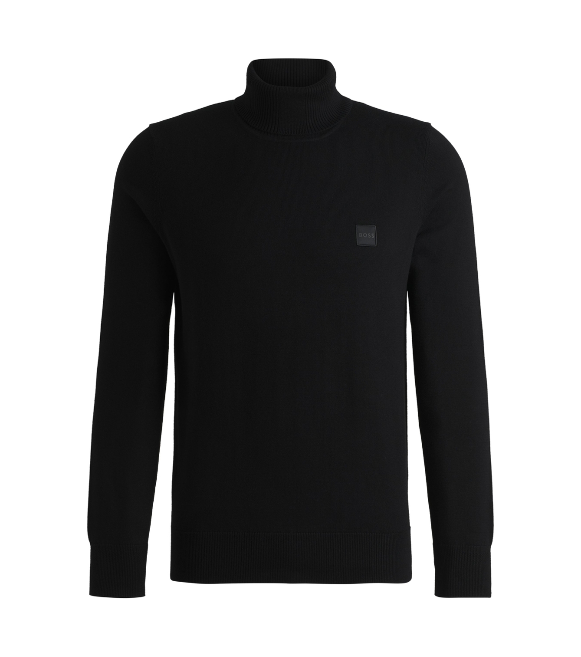 Hugo Boss pullover 50527573 001. Dit rechtvallende model heeft een col en lange mouwen. Deze zwarte pullover van Hugo Boss heeft ribgebreide boorden en is op de linkerborst bewerkt met een merkembleem.