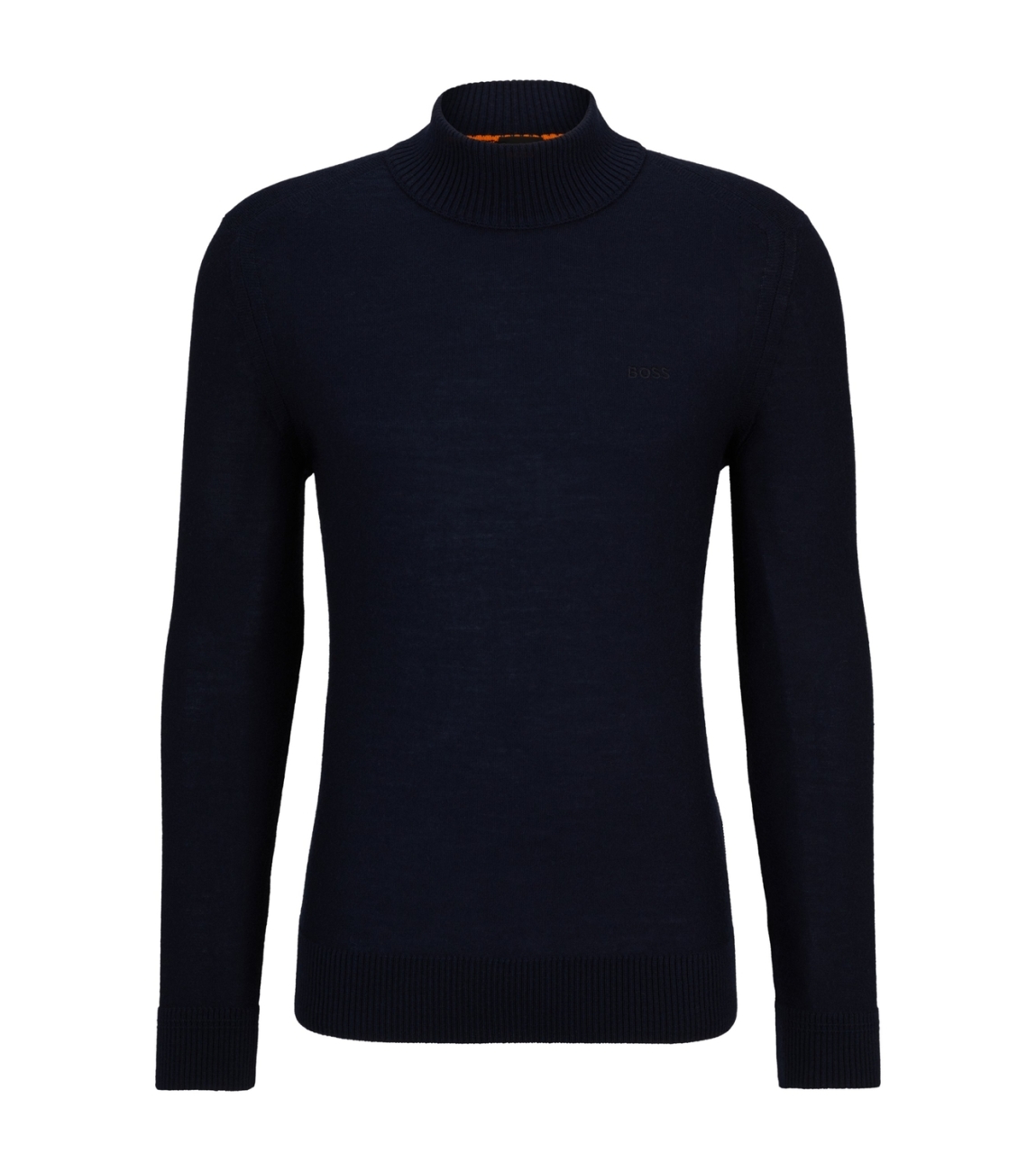 Hugo Boss pullover 50501761 404. Dit rechtvallende model heeft een turtleneck en lange mouwen. Deze donkerblauwe pullover van Hugo Boss is op de linkerborst bewerkt met het merkembleem en heeft ribgebreide boorden.