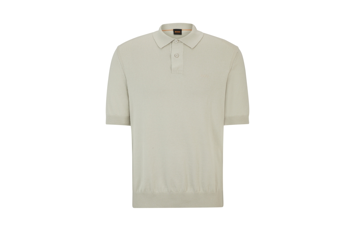Hugo Boss polo 50514223. Dit slim-fit model is voorzien van een kraag en heeft korte mouwen, deze beige polo van Boss sluit door middel van knopen.