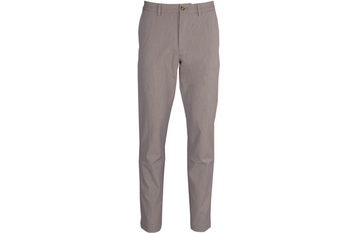Hugo Boss pantalon Kaiton. Dit Slim fit model sluit door middel van een knoop en heeft lange pijpen. Deze bruine broek van Boss is voorzien van twee schuine steekzakken aan de voorzijde en twee paspel zakken aan de achterzijde. Dit beige model heeft een toelopende pijp en is uitgevoerd met stretch.