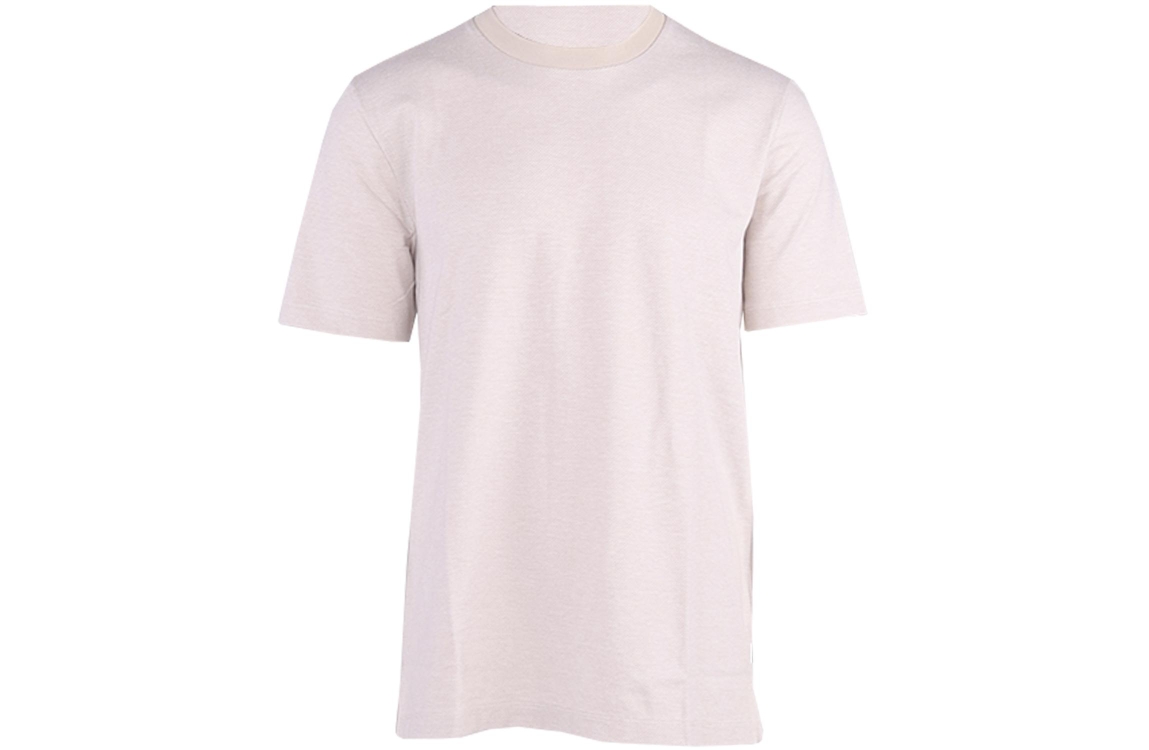 Hugo Boss T-shirt 50555163 286. Dit rechtvallende model heeft een ronde halslijn en korte mouwen. Deze beige T-shirt van Hugo Boss is uitgevoerd met een structuur en heeft afgewerkte boorden.