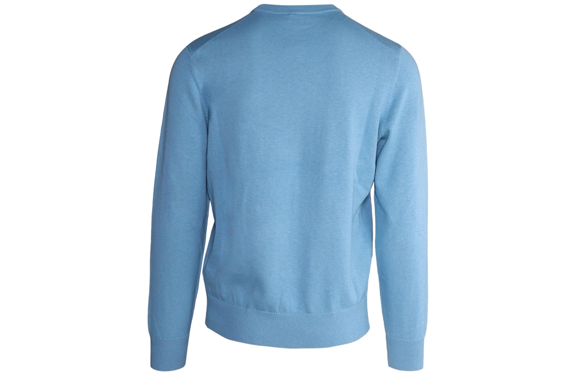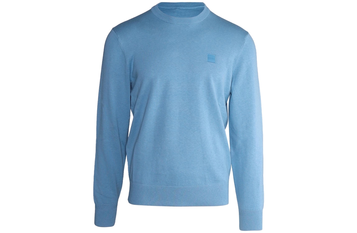 Hugo Boss trui 50471343. Dit regular fit model is voorzien van een ronde hals en heeft lange mouwen. Deze blauwe trui van Hugo boss is afgewerkt met een merkembleem op de borst.