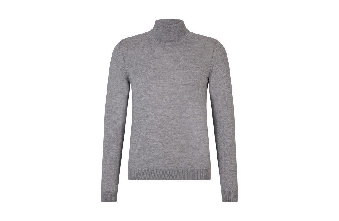 Hugo Boss pullover 50468262 041. Dit rechtvallende model heeft een col en lange mouwen. Deze lichtgrijze pullover van Hugo Boss is afgewerkt met ribgebreide boorden.
