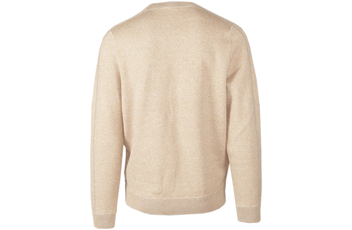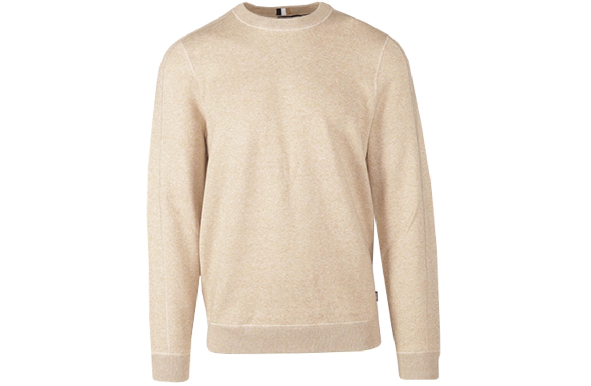 Hugo Boss trui Onore 50495402. Dit rechtvallend model is voorzien van een ronde hals en heeft lange mouwen. Deze beige pullover is gemêleerd uitgevoerd en is afgewerkt met ribboorden.