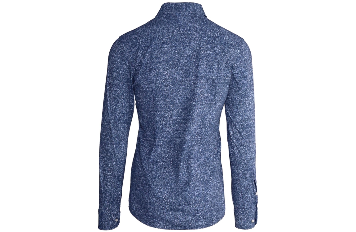Hugo Boss overhemd 50513462. dit aangesloten model is voorzien van een kraag en heeft lange mouwen. Deze blauwe overhemd van Hugo Boss is doormiddel van knopen te sluiten en is afgewerkt met een all overprint.
