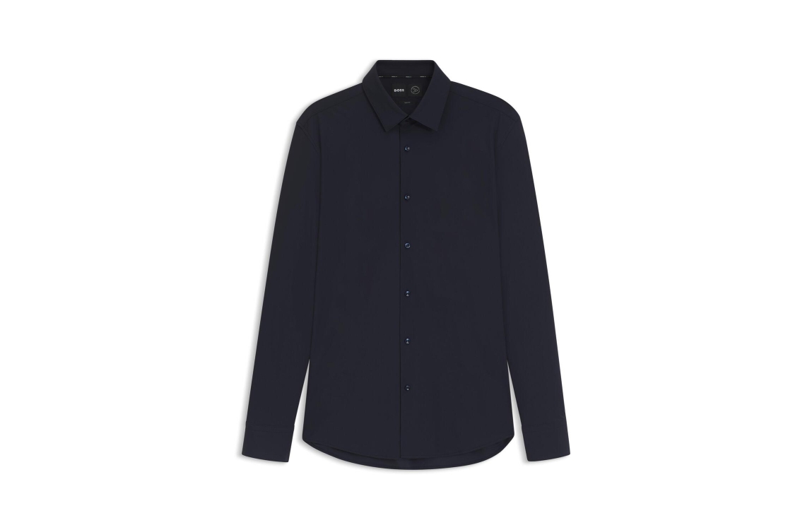 Hugo Boss overhemd P-HANK-s-kent-C1-222 10248739. Dit slim fit model heeft lange mouwen en is doormiddel van knopen te sluiten. Dit donker blauwe overhemd van Hugo Boss heeft geen zichtbaar merkembleem.