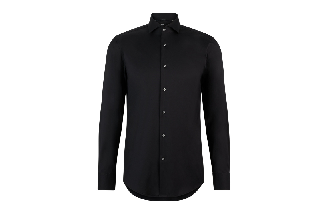 Hugo Boss overhemd 50479915 410. Dit slim fit model heeft een kraag en lange mouwen. Deze zwarte overhemd van Hugo Boss sluit door middel van knopen en is afgewerkt met manchetten. Het model is uitgevoerd in stretchkwaliteit.