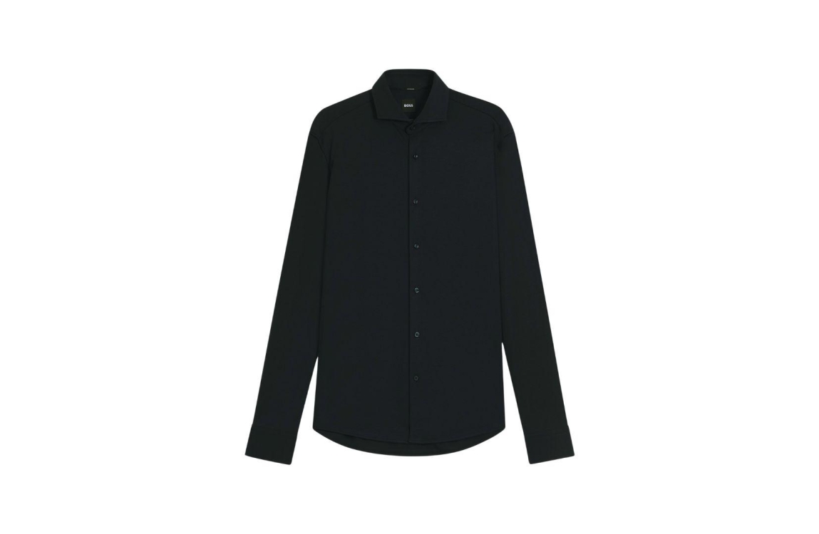 Hugo Boss-Black P-JOE-SP-261 10277423 01 348 Open green. Dit regular fit model heeft een kraag en lange mouwen. Deze donkergroene overhemd van Hugo Boss sluit aan de voorzijde door middel van knoopsluitingen en is uitgevoerd in lichte stretchkwaliteit.