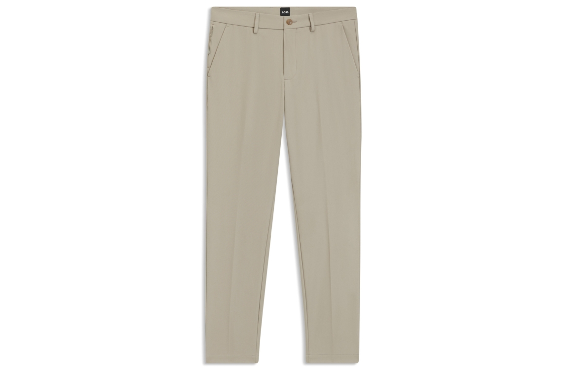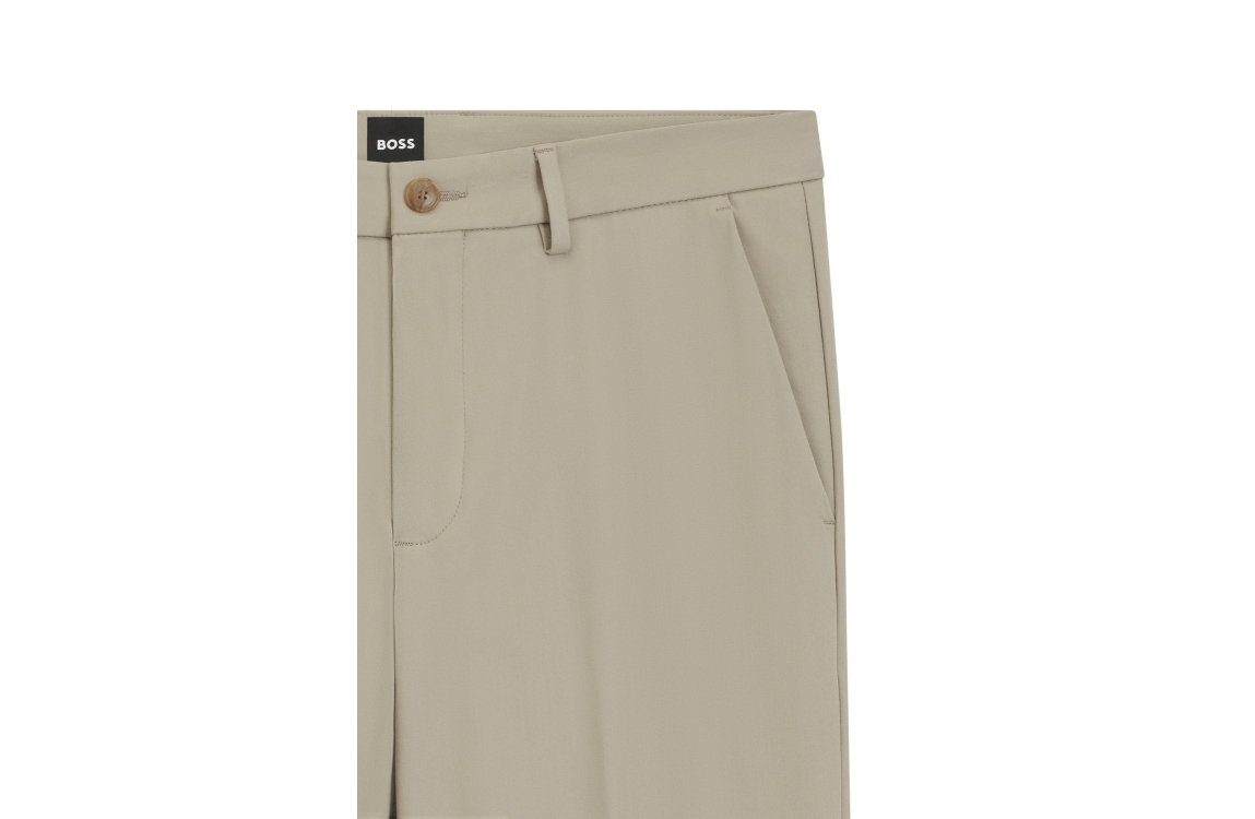 Hugo Boss-Black P-Kaiton broek 0271527. Dit slim fit model sluit door middel van een knoop en een rits. Deze beige broek van Hugo Boss is bewerkt met verschillende zakken, riemlusjes en uitgevoerd in een stretch kwaliteit.