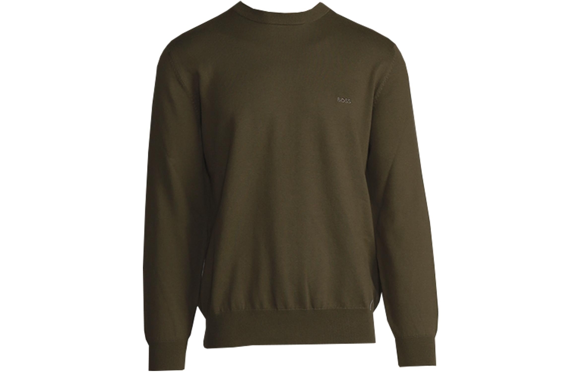 Hugo Boss trui 50476364. Dit rechtvallend model is voorzien van een ronde hals en heeft lange mouwen. Deze donker beige trui van Hugo Boss is bewerkt met een geborduurd merkembleem op de rechterborst en is afgewerkt met ribboorden.