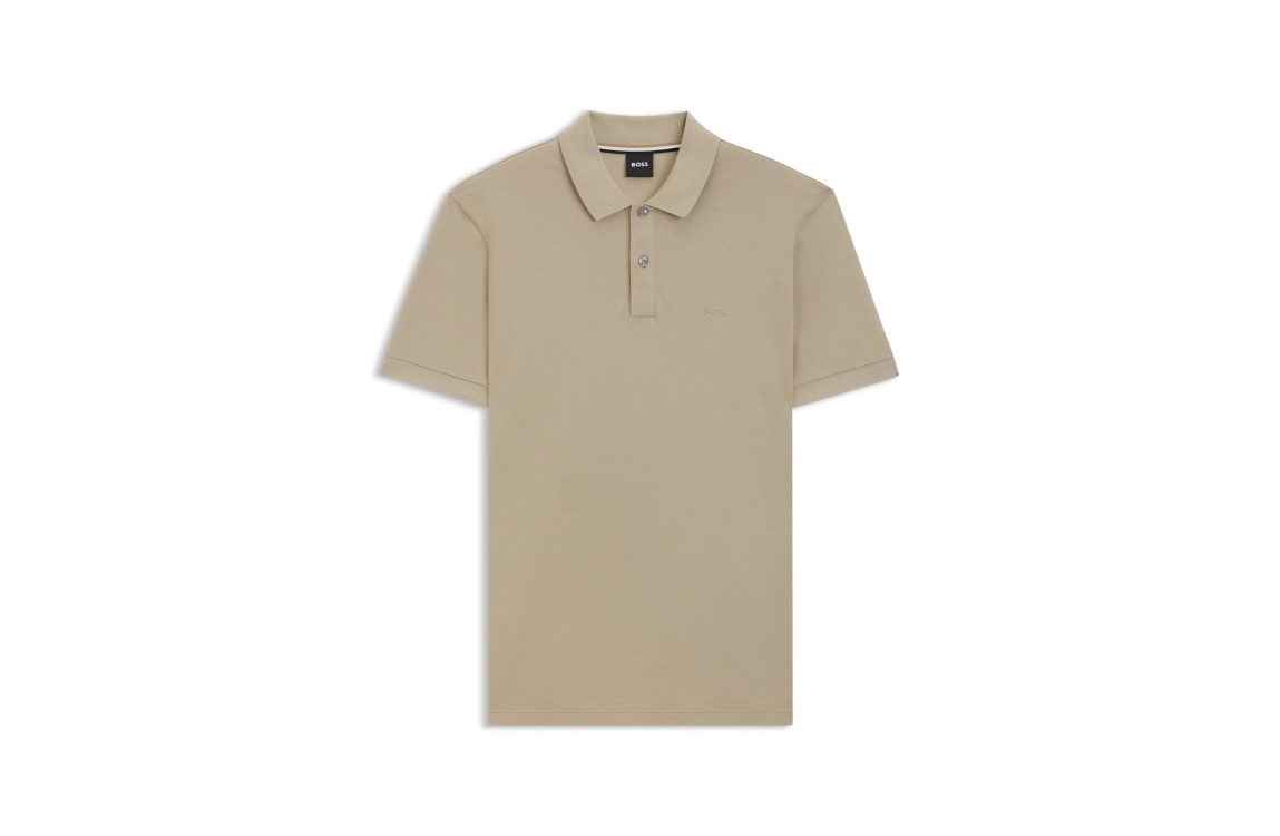 Hugo Boss polo 50468362. Dit slim fit model is voorzien van een kraag en heeft korte mouwen. Deze beige polo van Hugo Boss is doormiddel van knopen te sluiten en is afgewerkt met splitten aan de onderkant.