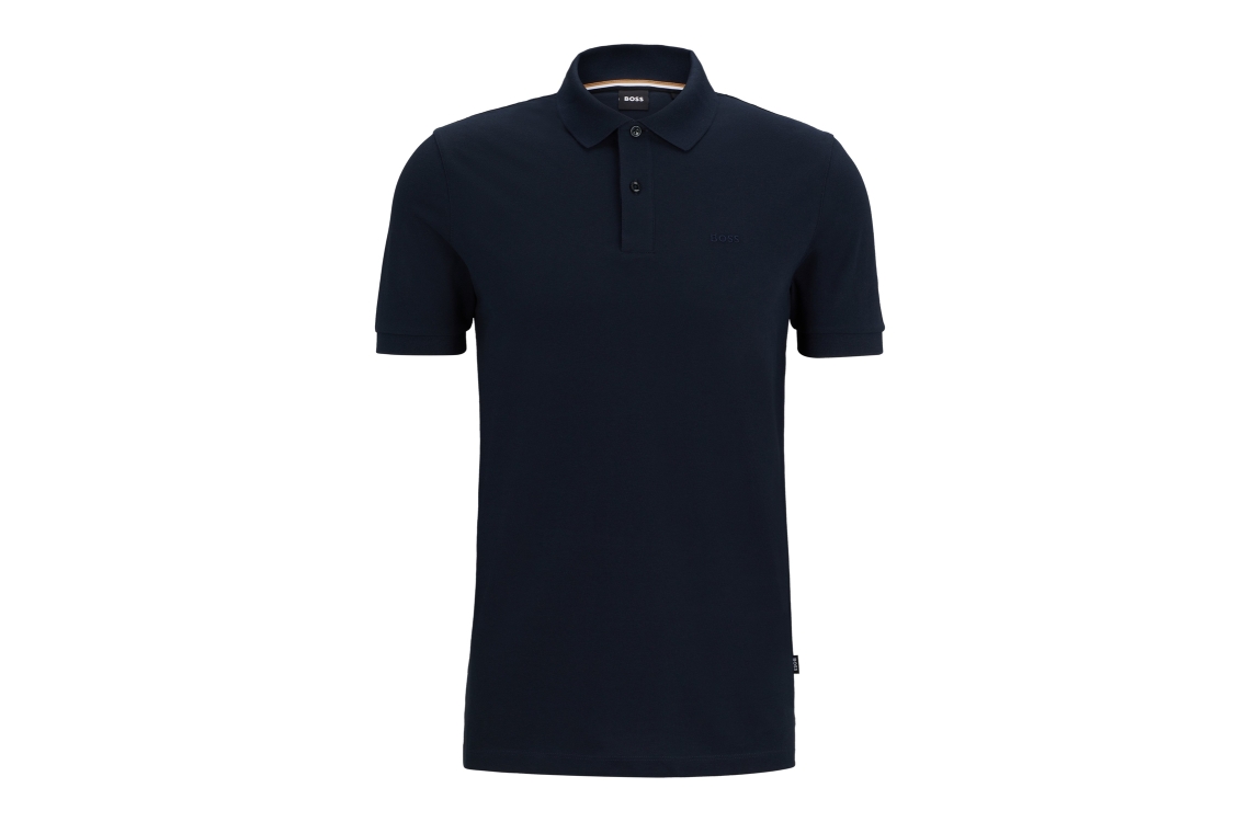 Hugo Boss polo Pallas 10241531 01. Dit regular fit model is voorzien van een kraag en heeft korte mouwen. Deze donker blauwe polo van Hugo Boss is doormiddel van knopen te sluiten en is afgewerkt met splitten aan de onderkant en een merk embleem op de borst. Deze polo heeft een gewoven structuur.
