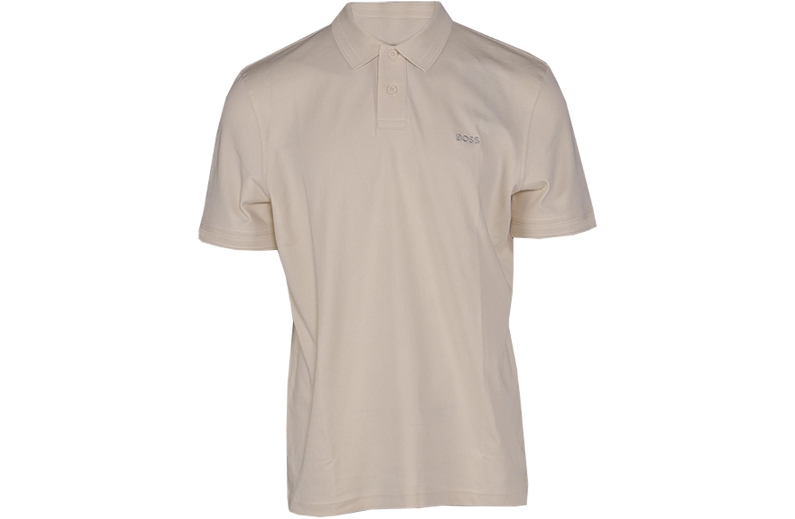 Hugo Boss polo 50520109. Dit regular fit model heeft een kraag met sluitbare knopen en korte mouwen. Deze lichtgele polo van Hugo Boss is op de linkerborst bewerkt met het merkembleem en heeft gehaakte details op de boorden.