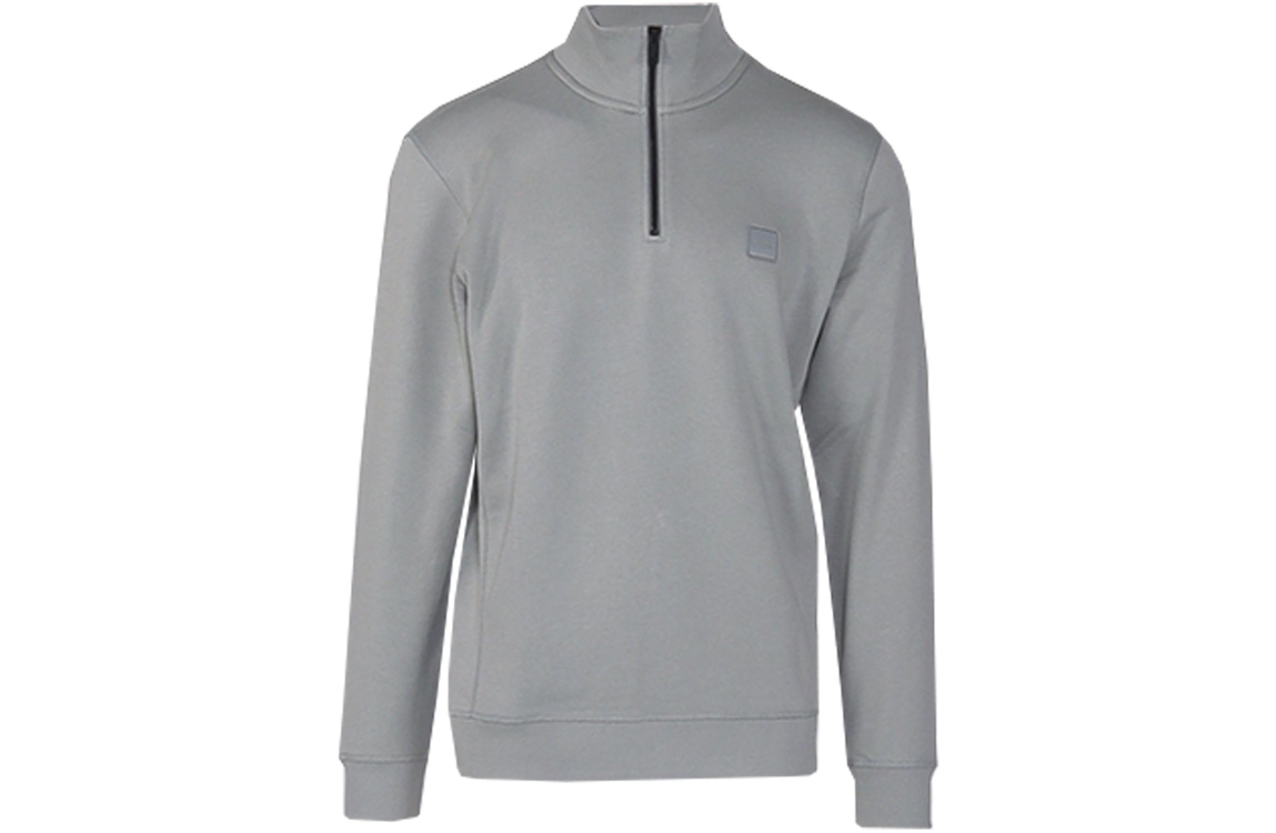 Hugo Boss pullover Zetrust 10234591 01. Dit regular fit model is voorzien van lange mouwen en is doormiddel van een rits te sluiten. Deze groene zip van Hugo Boss is afgewerkt met logo op de borst en brede boorden aan de onderkant en mouw uiteinden.