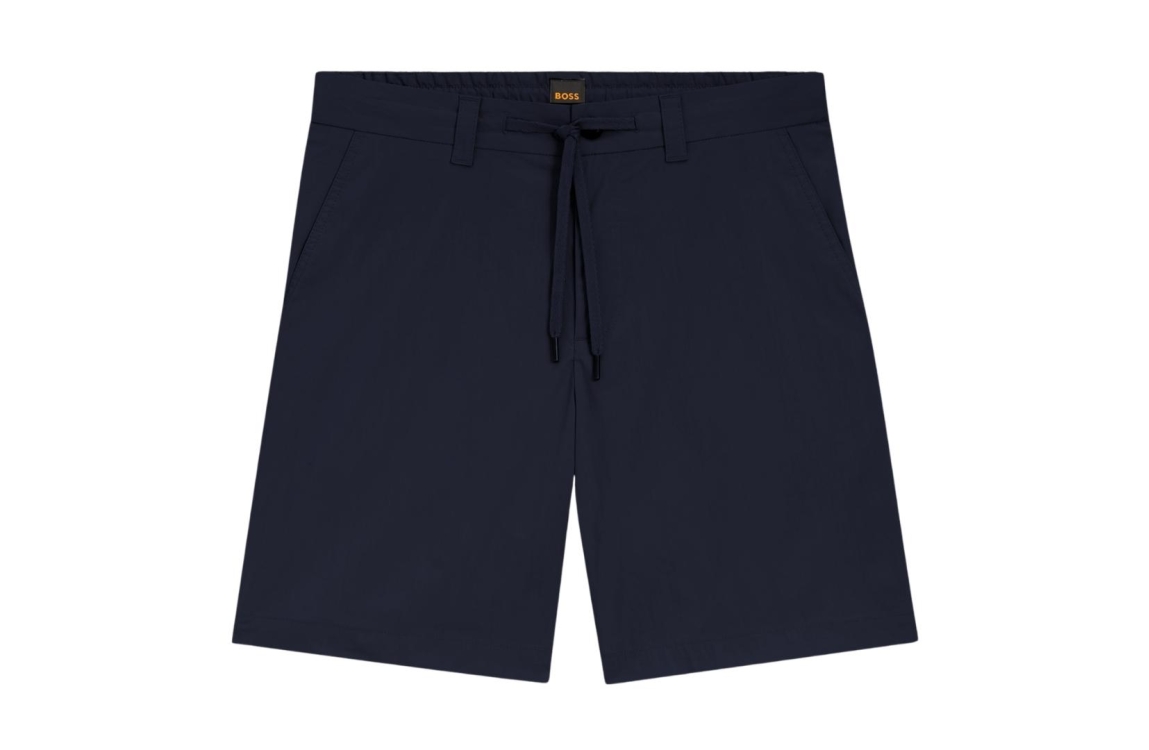 Hugo Boss short 50536885 404. Dit tapered fit model sluit door middel van een knoop- en ritssluiting met trekkoord en is voorzien van ceintuurlussen. Deze donkerblauwe short van Hugo Boss is uitgevoerd in een 5-pocketmodel en is gemaakt van katoen en elastaan.