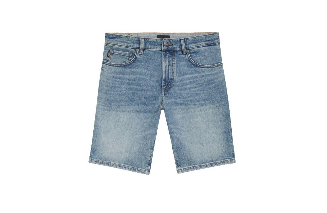 Hugo Boss Orange short 50559892 456. Dit regular fit model sluit door middel van een knoop- en ritssluiting en is voorzien van ceintuurlussen. Deze lichte denim short van Hugo Boss is uitgevoerd in een 5-pocket model en is afgewerkt met een donkerblauwe patch aan de achterzijde.