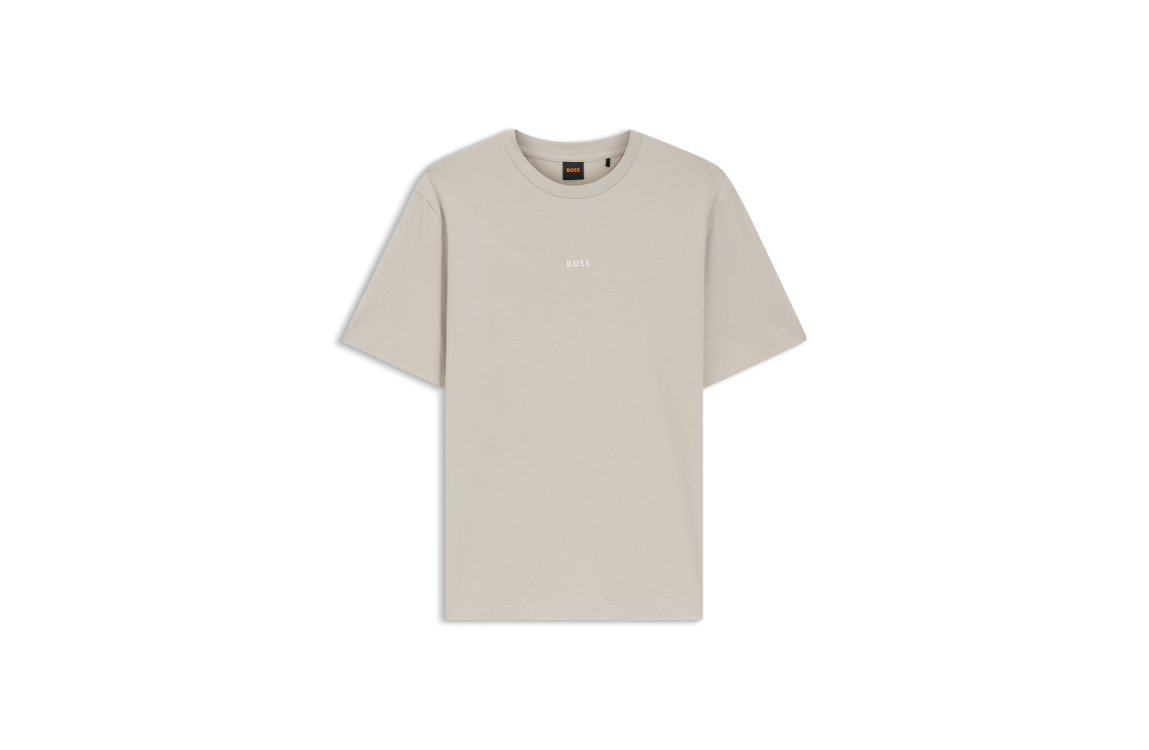 Hugo Boss T-shirt 50473278 070. Het regular fit model heeft een ronde halslijn en korte mouwen. Dit lichtgrijze T-shirt van Hugo Boss is op de borst gedetailleerd met het merkembleem.