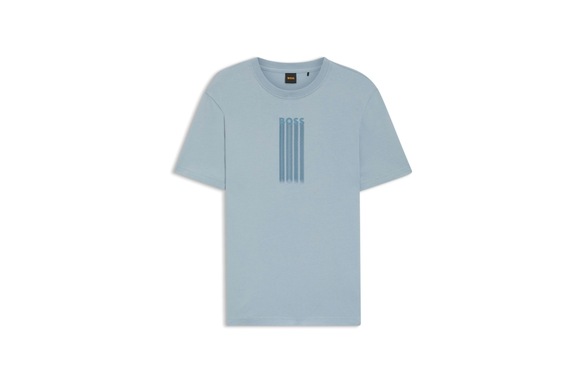 Hugo Boss orange T-Shirt 50561850. Dit rechtvallend model heeft een ronde hals en korte mouwen. Dit lichtblauwe T-Shirt van Hugo Boss is bewerkt met een branding opdruk aan de voorzijde.