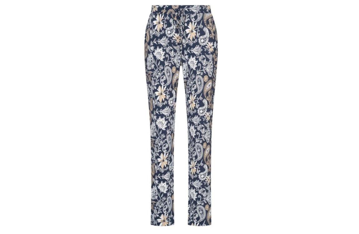 HV Polo Broek HVSSadie Navy. Dit regular fit model sluit door middel van een elastische boord met trekkoord en beschikt aan de voorzijde over twee steekzakken en twee zakken aan de achterzijde. Deze donkerblauwe broek van HV Polo is all-over bewerkt met een print.