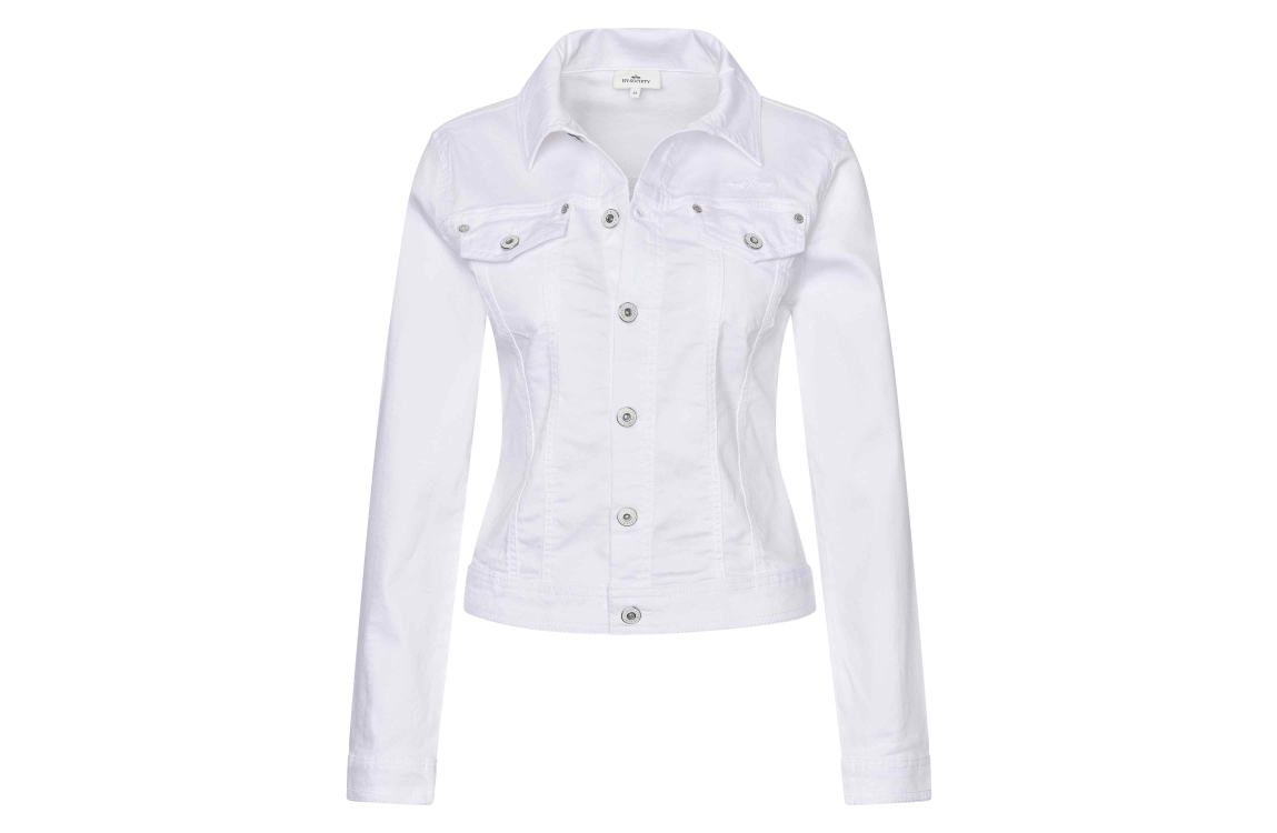HV Polo spijkerjasje hvsvivian 0406103509. Dit aangesloten model heeft een kraag, lange mouwen en sluit door middel van knopen. Dit witte spijkerjasje van HV Polo is voorzien van klepzakken op het voorpand en valt wat korter.