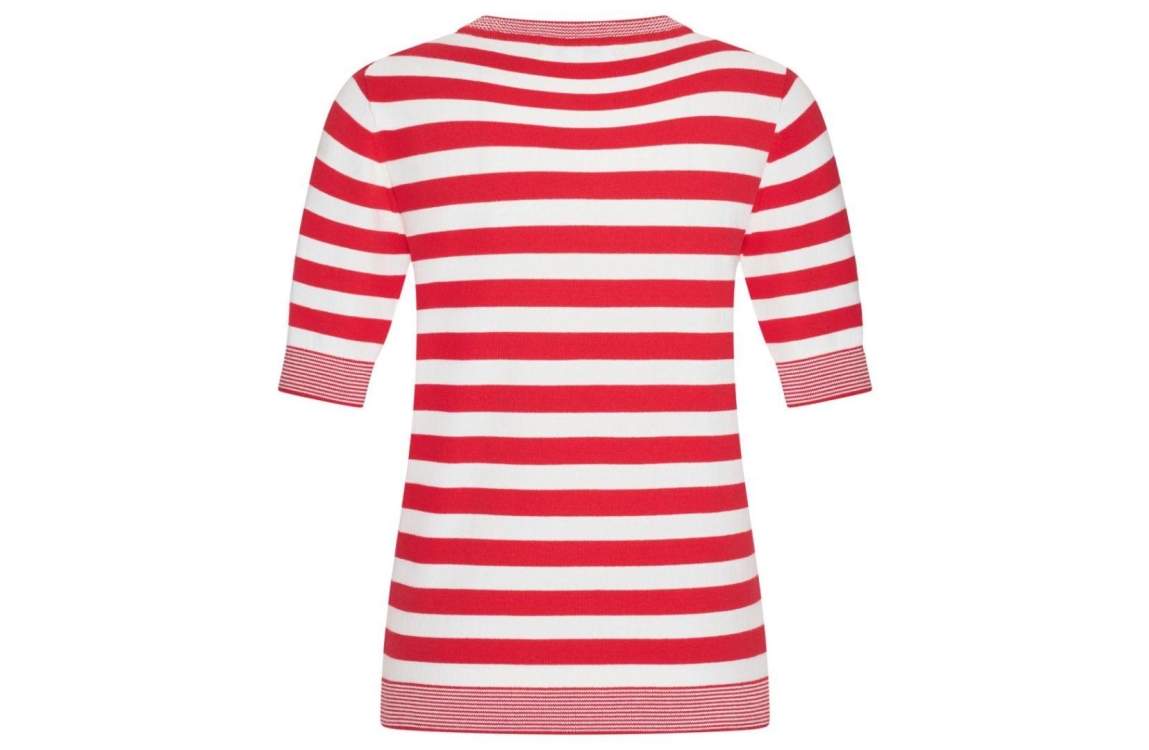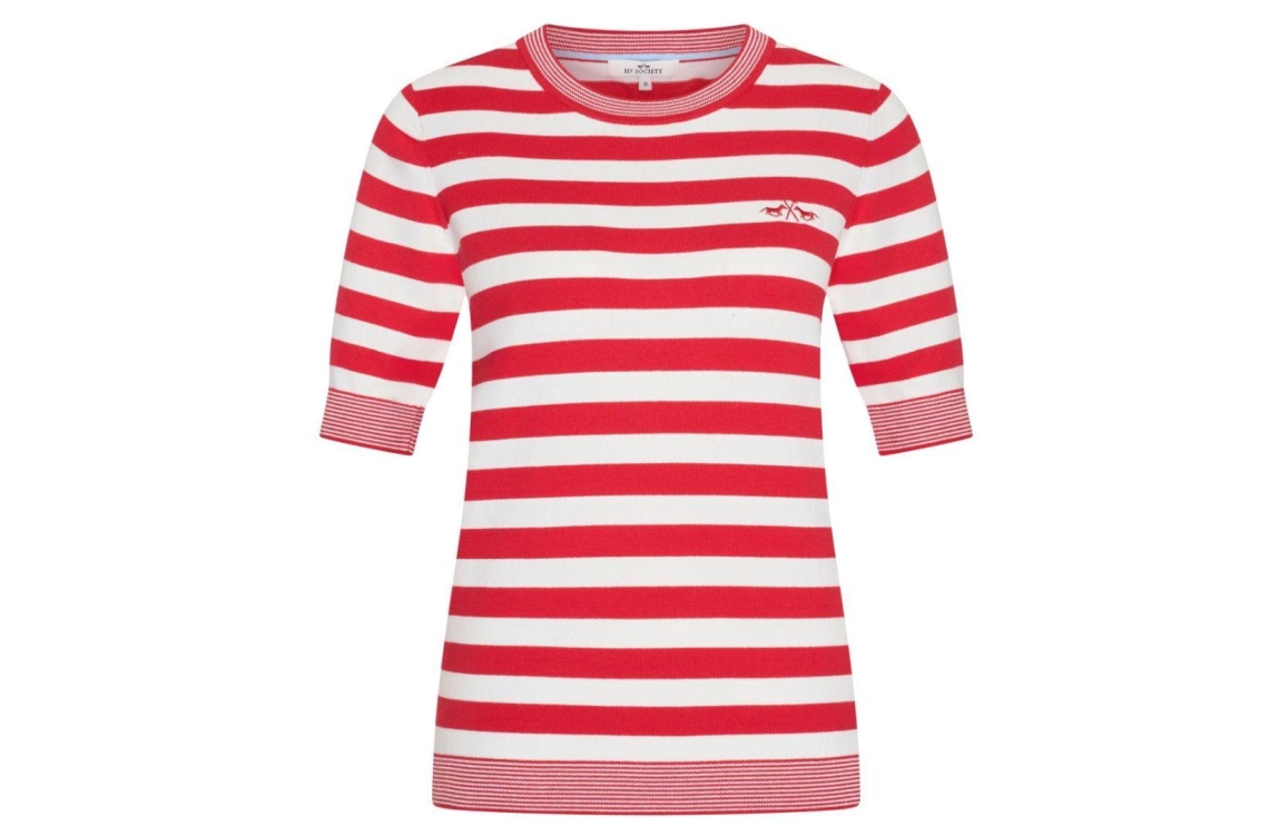 HV Polo pullover HVSBobby 0409103828. Dit rechtvallend model is voorzien van een ronde hals en heeft korte mouwen. Deze rood/witte pullover van HV Polo is bewerkt met strepen en afgewerkt met het logo op de borst.