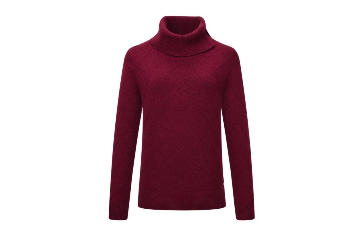 HV Polo pullover HVSMirella 0409103758. Dit rechtvallend model is voorzien van een col afgewerkt met een splitje en heeft lange mouwen. Deze burgundy pullover van HV Polo is bewerkt met een ruit structuur.