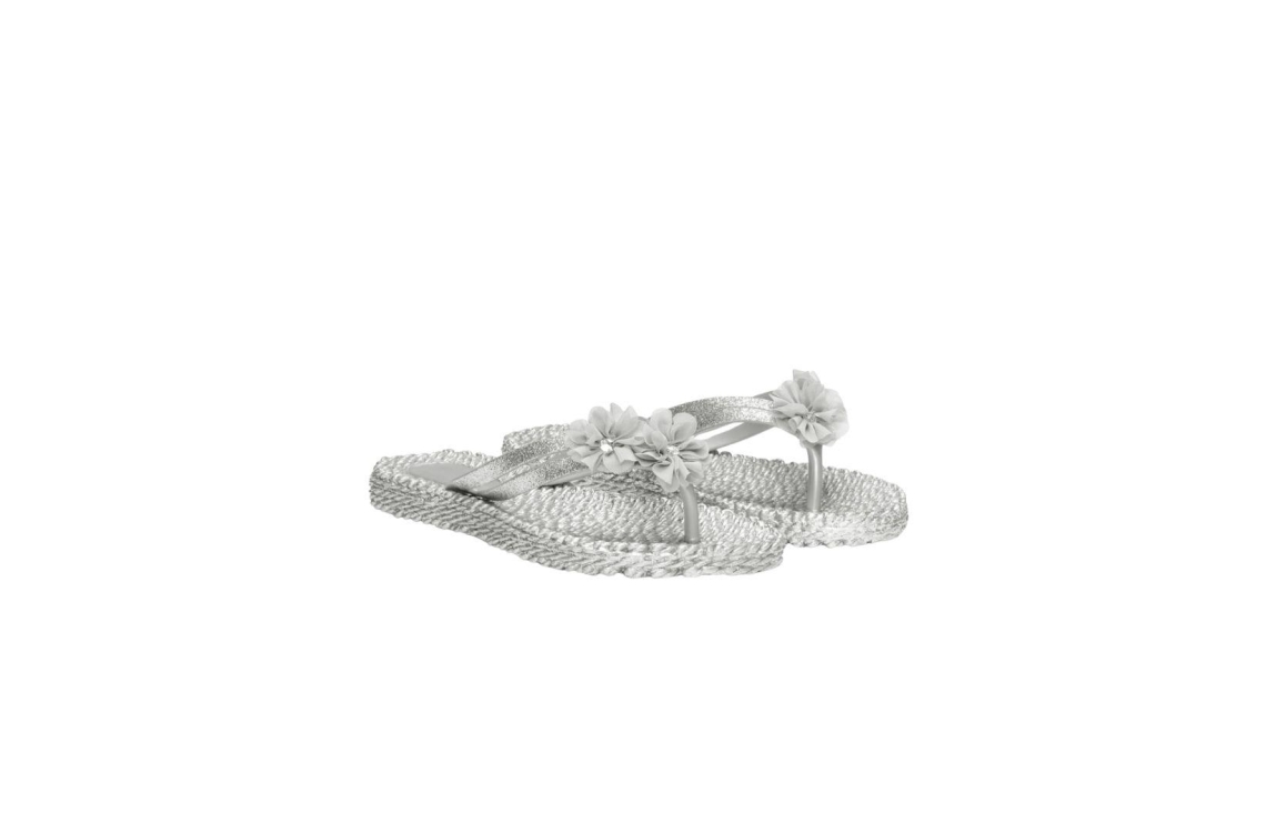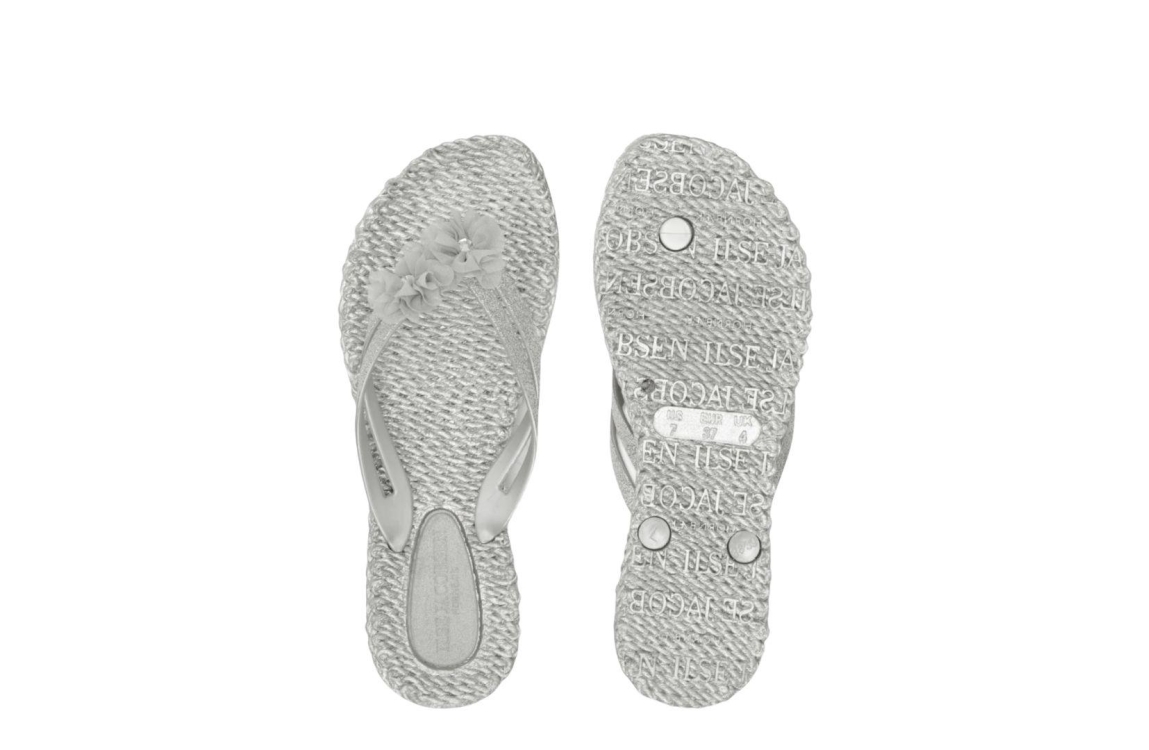 Ilse Jacobsen Flip Flops with flowers. Deze zilveren slipper beschikt over dubbele bandjes bewerkt met glitter en decoratieve bloemen. Dit model is voorzien van een rubberen zool waardoor ze licht en flexibel aanvoelen.