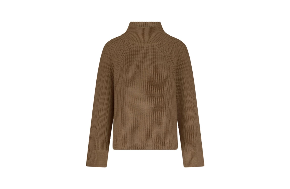 In Shape Gladys 2503 Camel. Dit rechtvallende model is voorzien van een col en heeft lange mouwen. Deze camel kleurige trui van In Shape beschikt over een gebreide stof.