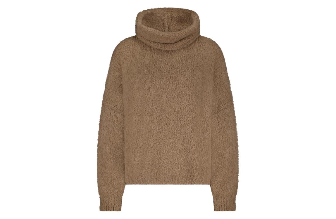 In Shape Mira 2503 Camel. Dit rechtvallend model is voorzien van een ronde hals met afneembare col en heeft lange mouwen. Deze bruine pullover van In Shape is afgewerkt met boorden.
