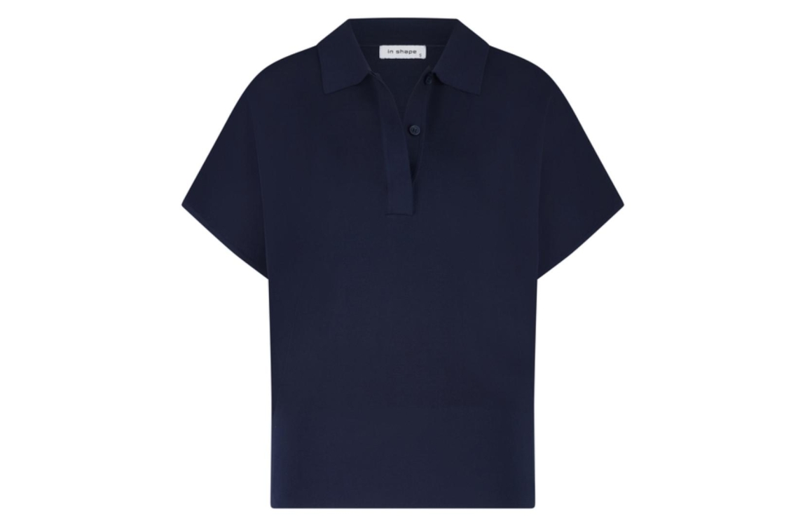 In Shape Pullover Oana INS2610829. Dit wijdvallend model heeft een kraag, korte mouwen en sluit door middel van knopen. Deze donkerblauwe pullover van In Shape is uitgevoerd in een stevig materiaal.