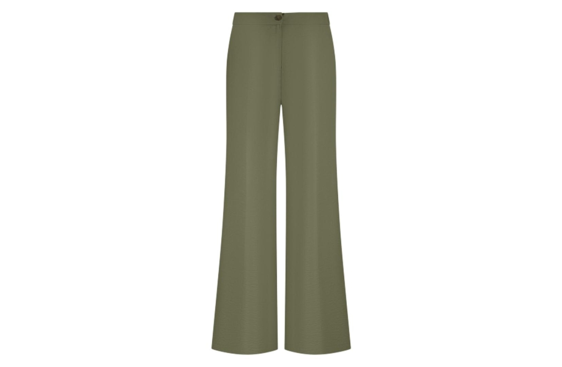 In Shape Trousers Caya INS2611542. Dit wijdvallend model sluit door middel van een knoop en een rits. Deze donkergroene broek van In Shape is voorzien van schuine steekzakken en uitgevoerd in een luchtig materiaal.