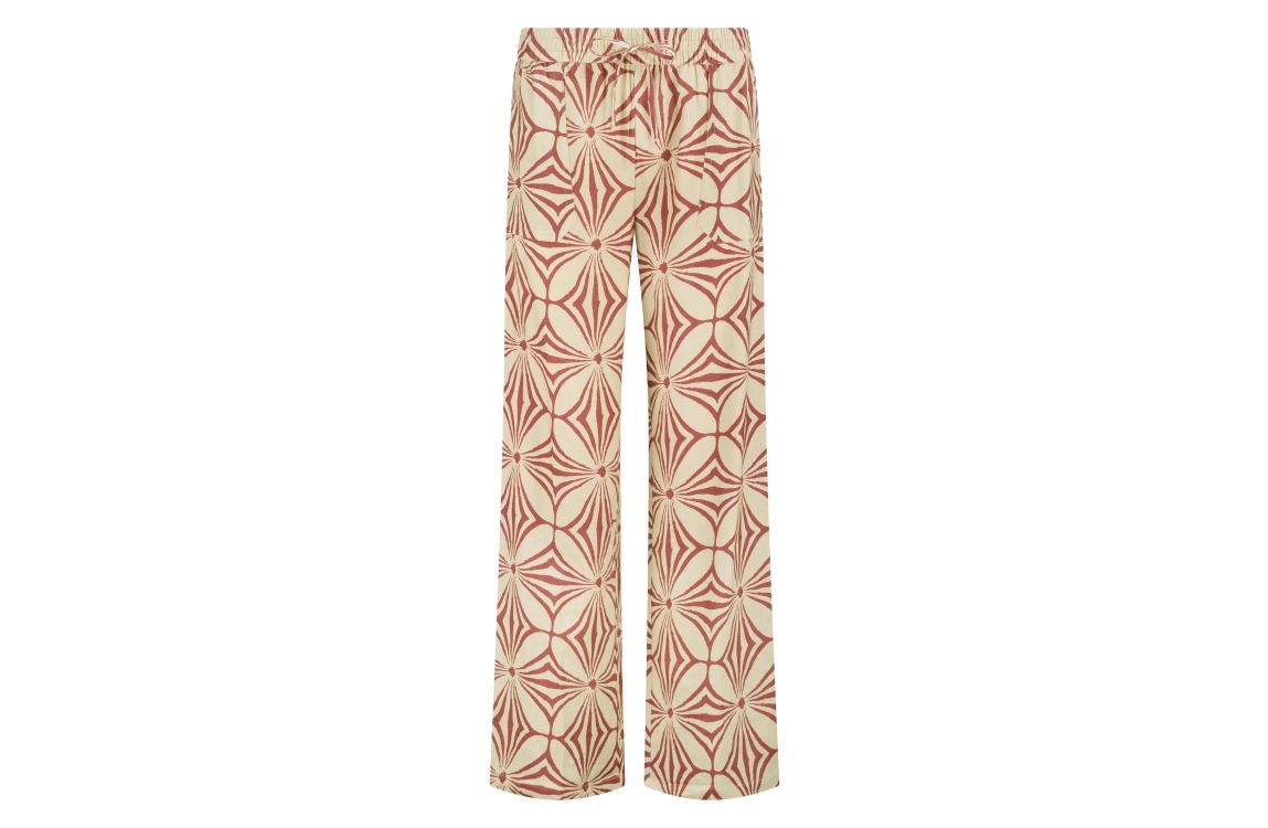 In Shape Trousers Linn Aop 5004 Grape. Dit soepelvallende model sluit aan de bovenzijde door middel van een elastische boord en een trekkoord. Deze beige broek van In Shape is voorzien van schuine steekzakken. Dit model is all-over bewerkt met een rood bloemenpatroon.