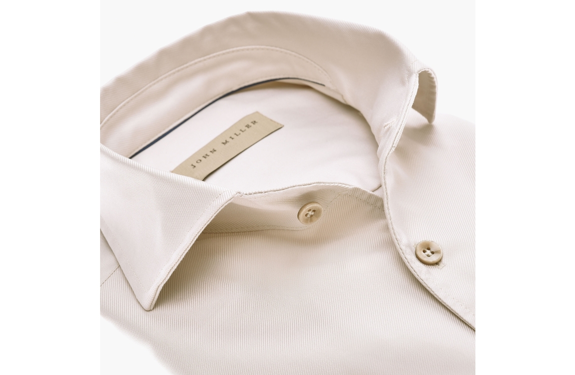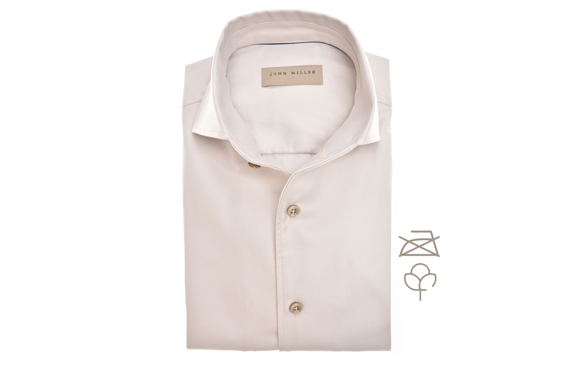 John Miller overhemd 5. Dit slim fit model is voorzien van een kraag en heeft lange mouwen. Dit beige overhemd van John Miller sluit door middel van knopen.
