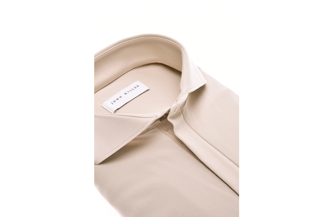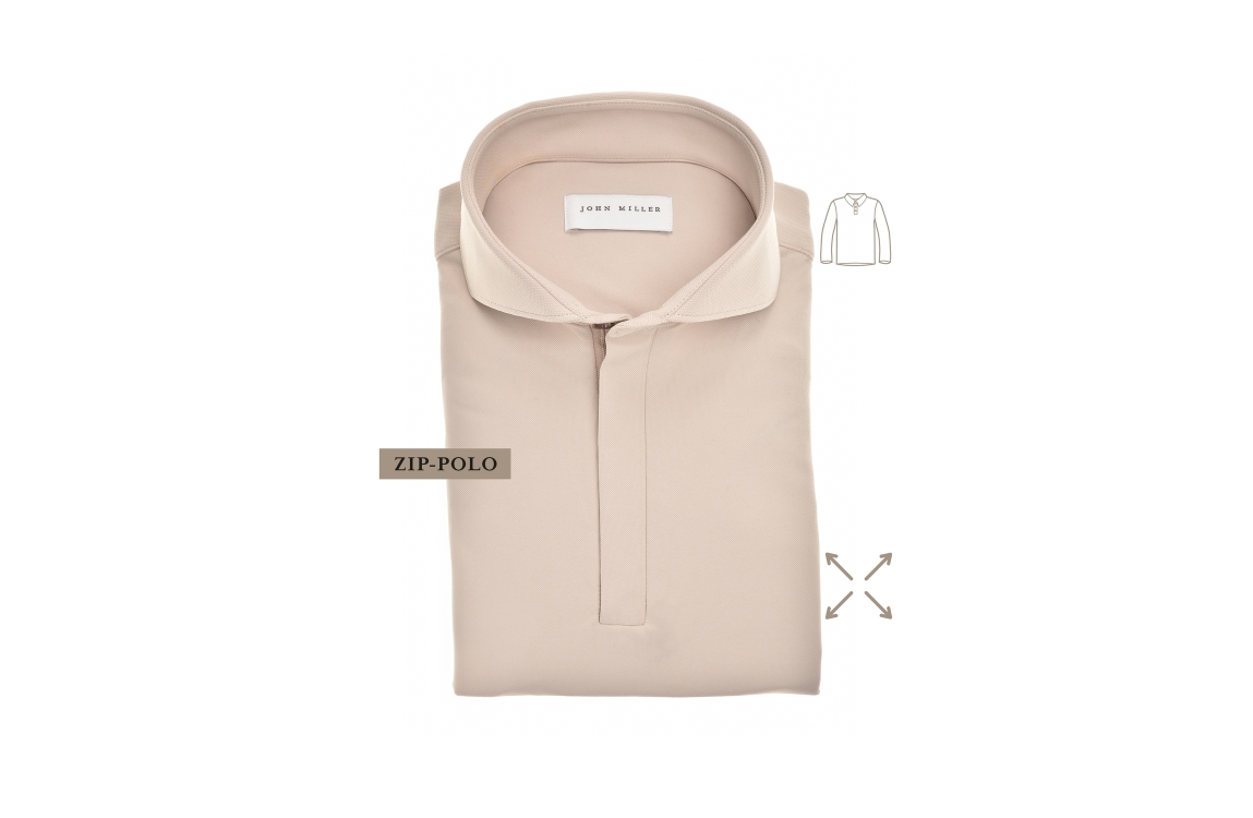 John Miller polo lange mouw JM24049 SFZP5. Dit slim fit model heeft een kraag en lange mouwen met boorden. Deze licht bruine polo van John Miller sluit aan de voorzijde door middel van een rits.