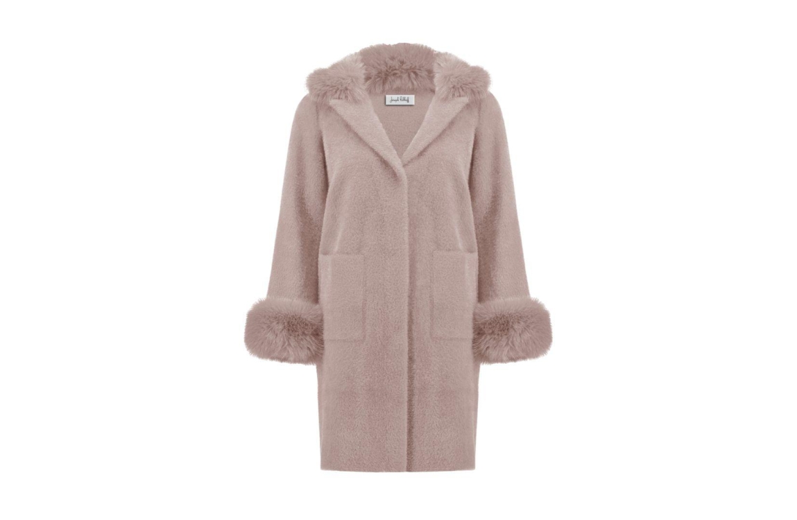 Joseph Ribkoff mantel 243923F25. Dit rechtvallend model is voorzien van een reverskraag en heeft lange mouwen. Deze roze mantel van Joseph Ribkoff sluit door middel van knopen en beschikt over opgestikte zakken. Dit model is afgewerkt met faux fur.
