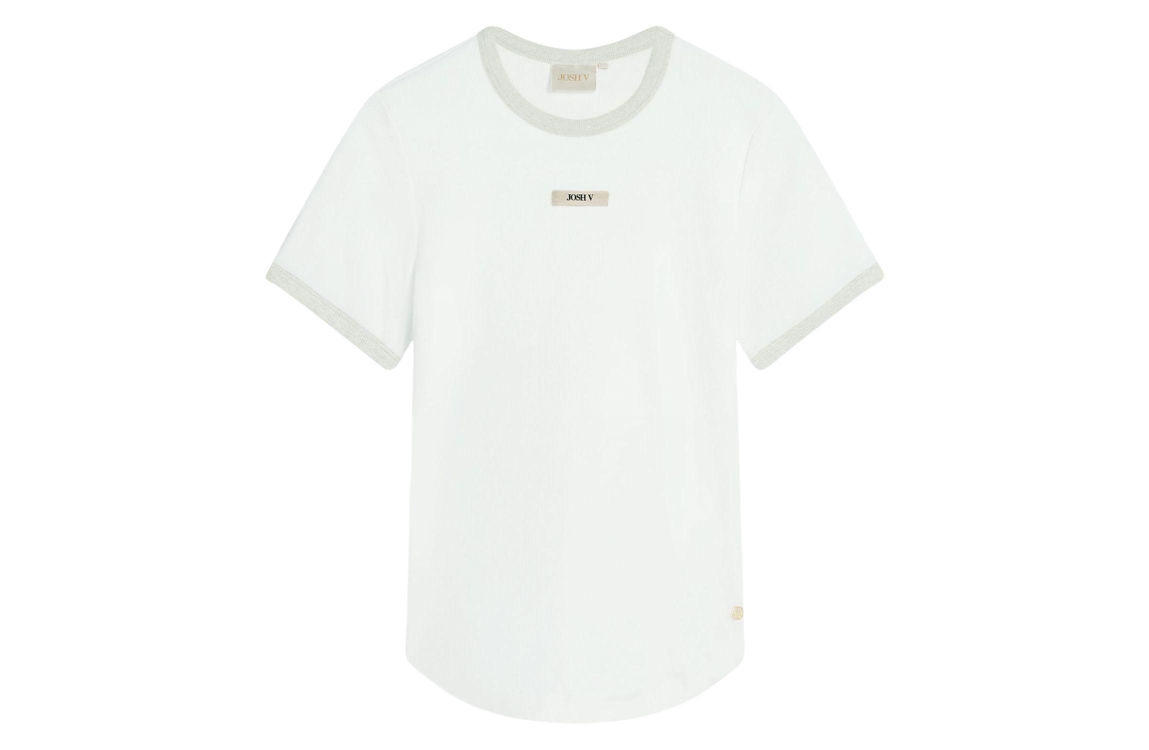 Josh V CODY slim fit logo T-shirt 033 off white. Dit aangesloten model is voorzien van een ronde hals en heeft korte mouwen. Dit witte shirt van Josh V is afgewerkt met een contrasterende bies en een subtiel JOSH V logo embleem op de voorzijde.