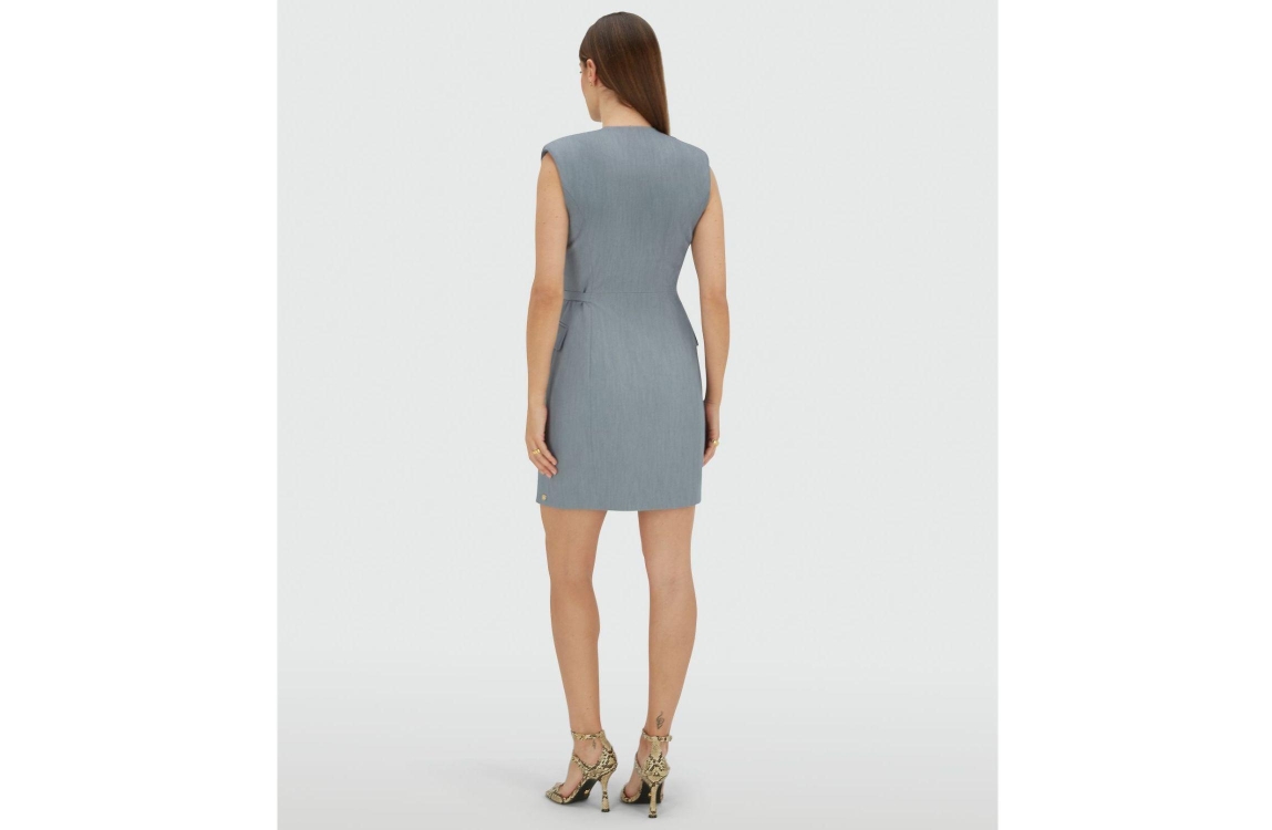 Josh V HENLEY wrap dress 625 sky blue melange. Dit aangesloten model is voorzien van een v-hals en is mouwloos. Deze blauwe blazerjurk van Josh V is afgewerkt met een ceintuur met gespsluiting waarmee de taille geaccentueerd wordt. Dit model heeft twee klepzakken aan de zijkanten.