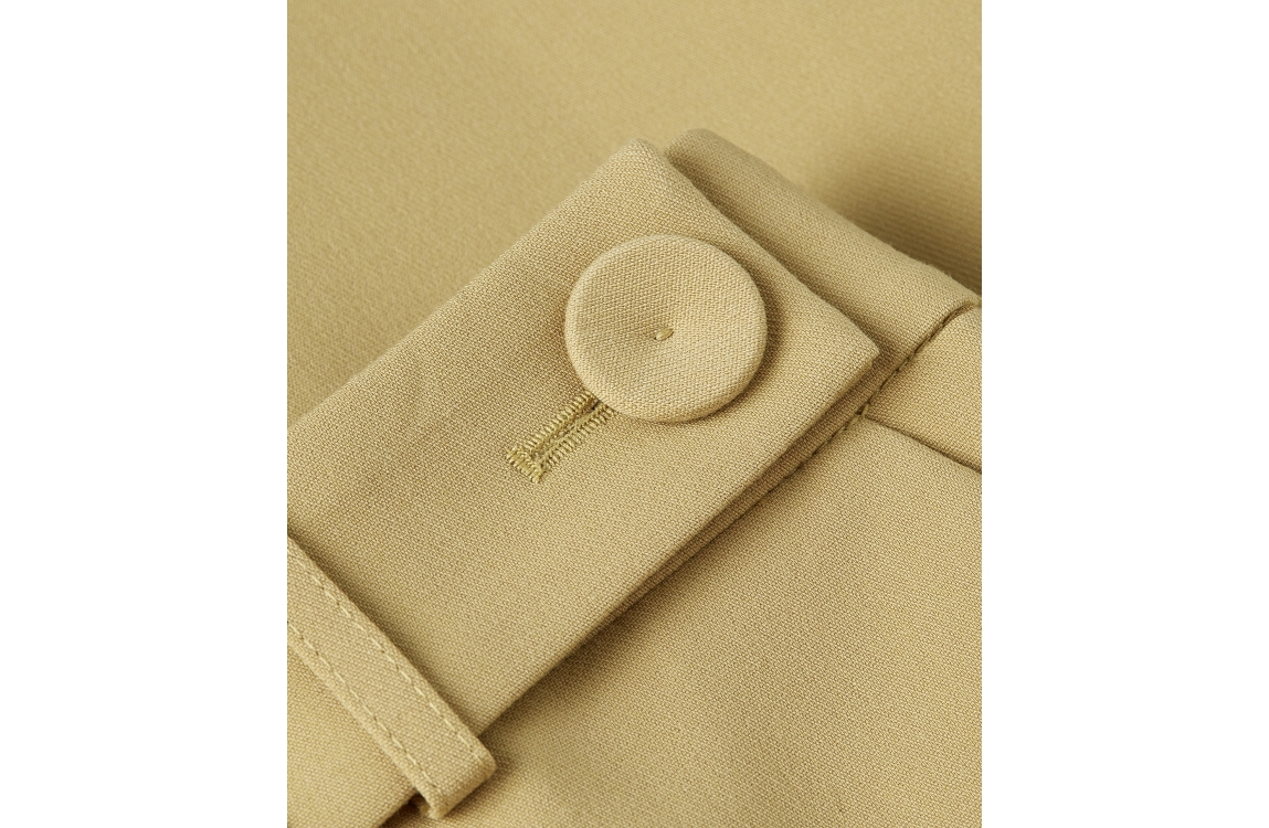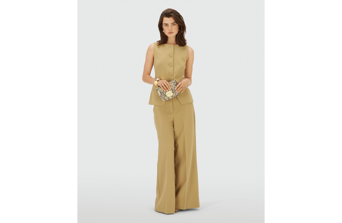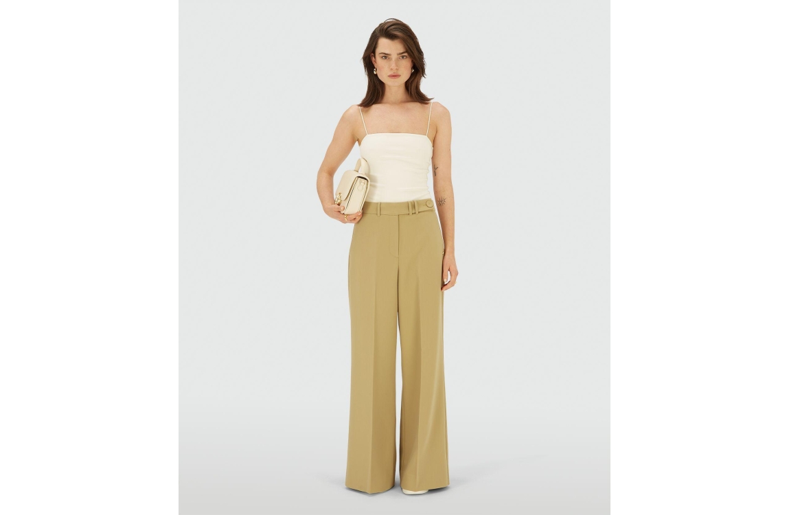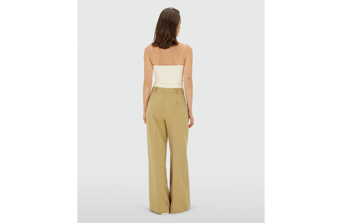 Josh V JESSIE high-rise wide-leg trousers 623 mustard yellow. Dit wide leg model sluit door middel van een knoop en een rits. Deze mosterd geel kleurige pantalon is voorzien van twee steekzakken aan de voorzijde en twee paspelzakken aan de achterzijde. Dit model is high waisted en is verlengbaar door de lange zoom.