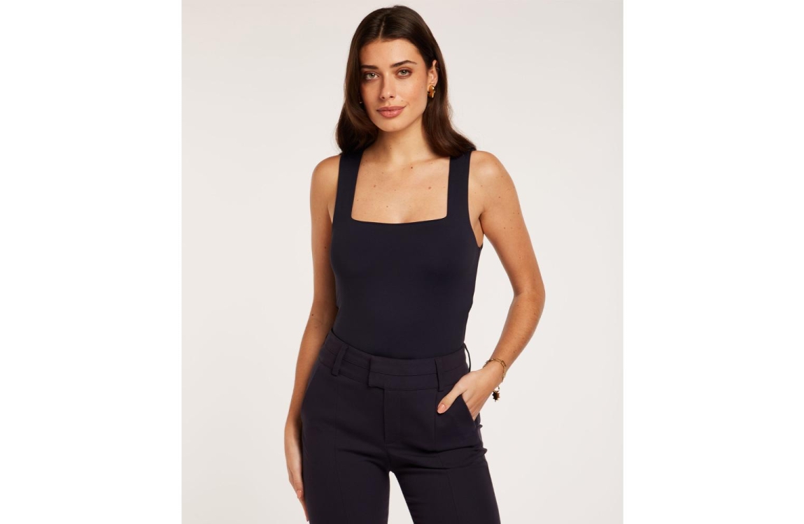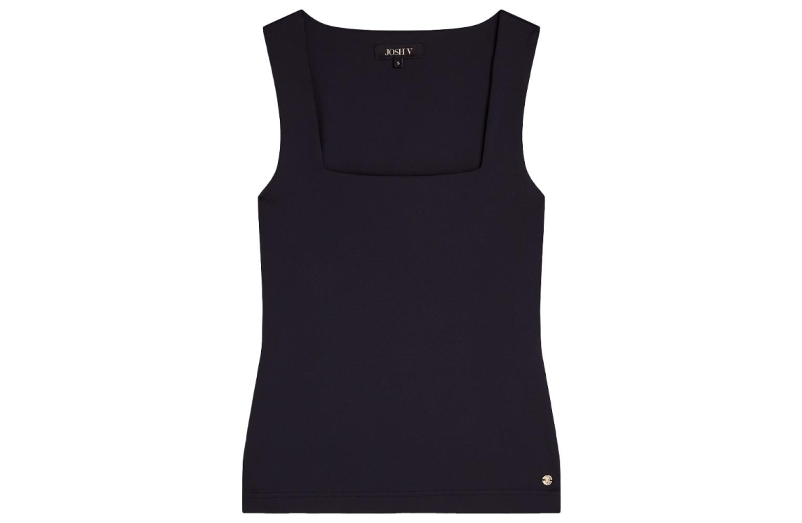 Josh V top Linde JV-5000-1110. Dit aangesloten model is voorzien van een vierkante hals en is mouwloos. Deze blauwe top van Josh V is stretchy dubbel uitgevoerd en afgewerkt met een klein merkembleem aan de onderzijde.