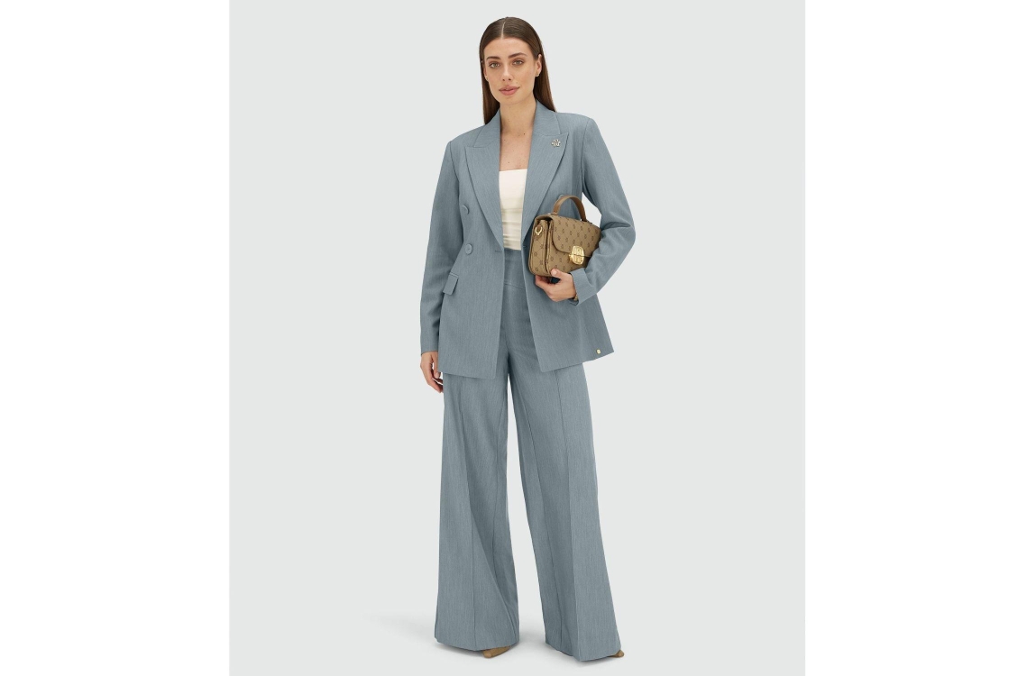 Josh V KASSIDY fitted blazer 625 sky blue melange. Dit getailleerde model heeft een reverskraag en lange mouwen. Deze blauwe blazer sluit aan de voorzijde door middel van knopen en beschikt over twee klepzakken aan de voorzijde. Dit model is gedetailleerd met een goudkleurig JOSH V embleem op de kraag.