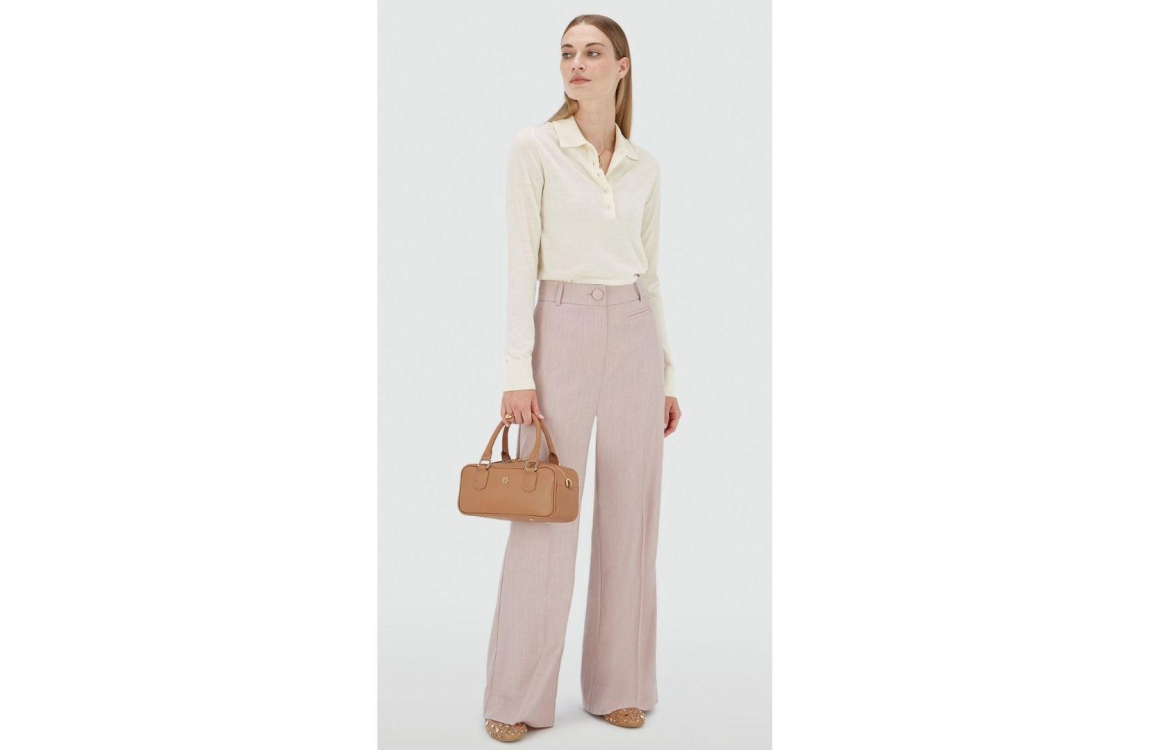 Josh V pantalon Kate JV-2510-0603. Dit wide leg model sluit door middel van twee knopen en een rits afgewerkt met ceintuurlussen. Deze roze pantalon van Josh V beschikt over twee steekzakken en een paspelzak aan de voorzijde en twee paspelzakken aan de achterzijde. Dit model is gedetailleerd met plooidetails en elastiek in de achterzijde van de tailleband.
