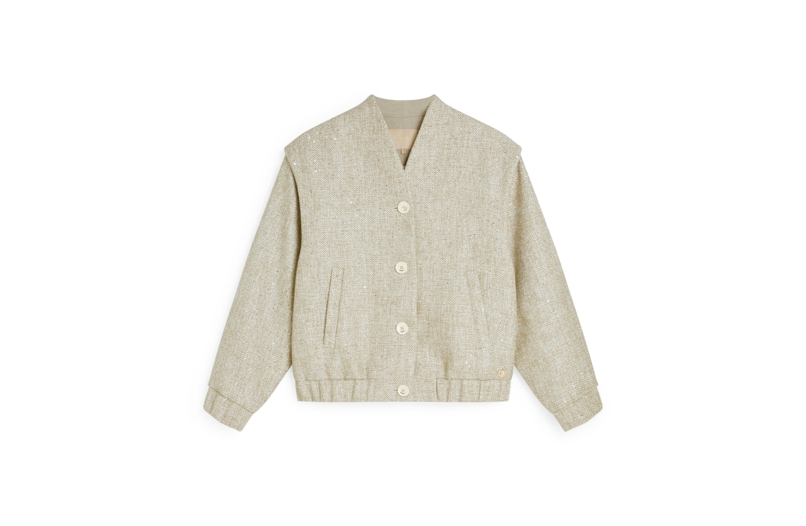 Josh V KELLIE JV-2508-0305 bomberjack. Dit oversized model heeft een v-hals en lange mouwen. Deze lichtbruine bomber van Josh V sluit door middel van knopen en is bewerkt met glitter. Dit stijlvolle model is voorzien van steekzakken.