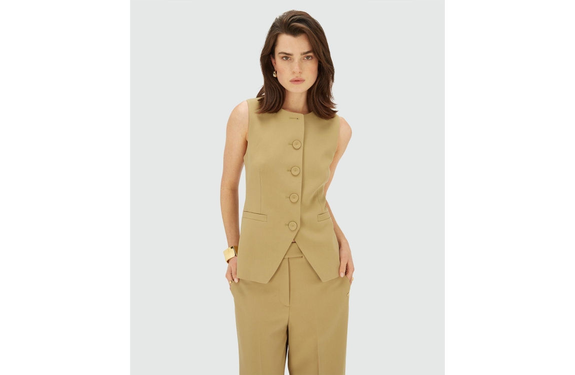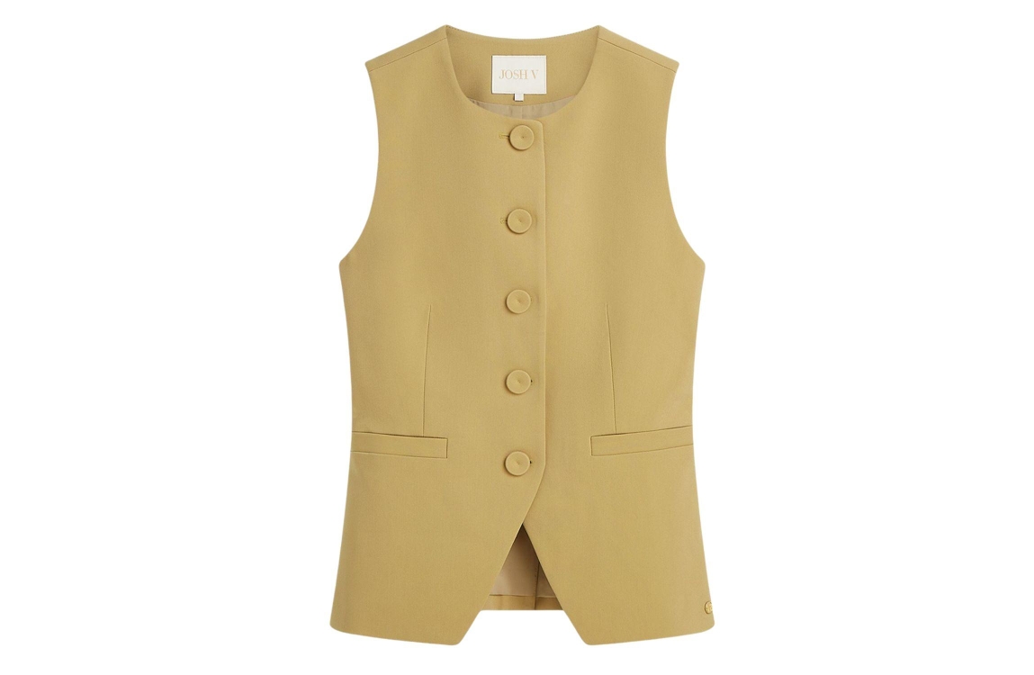 Josh V KIRO fitted waistcoat 623 mustard yellow. Dit aangesloten model is voorzien van een ronde hals en is mouwloos. Deze mosterd geel kleurige gilet van Josh V sluit door middel van knopen aan de voorzijde en heeft een riemdetail aan de achterzijde. Dit model kun je combineren met de bijpassende Jessie pantalon.
