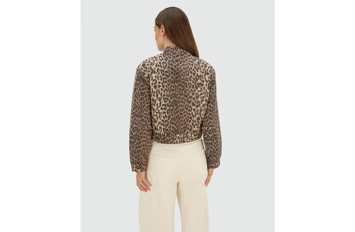 Josh V NADINE bomber jacket with leopard print 604 leopard brown. Dit oversized model heeft een ronde hals en lange mouwen. Deze leopard print bomber van Josh V sluit door middel van knopen en is afgewerkt met subtiele schoudervullingen. Dit model heeft twee steekzakken en is afgewerkt met elastische boorden.