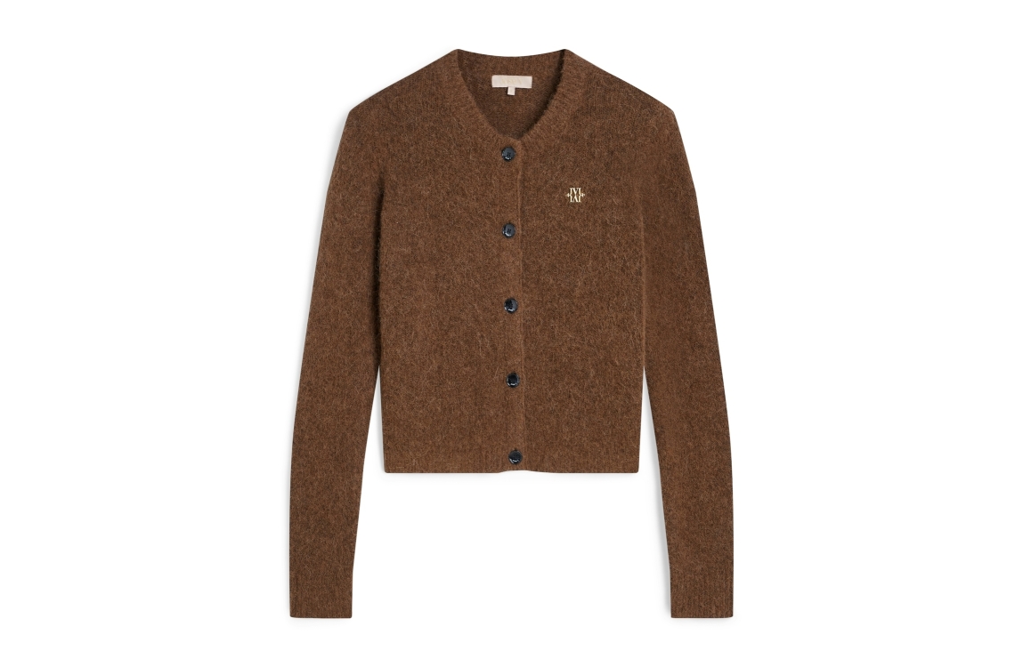 Josh V PAULINE 585 JV-2508-0201 vest. Dit regular fit model heeft een ronde hals en lange mouwen. Dit bruine vest van Josh V sluit door middel van knopen en beschikt over een gouden detail op het voorpand.