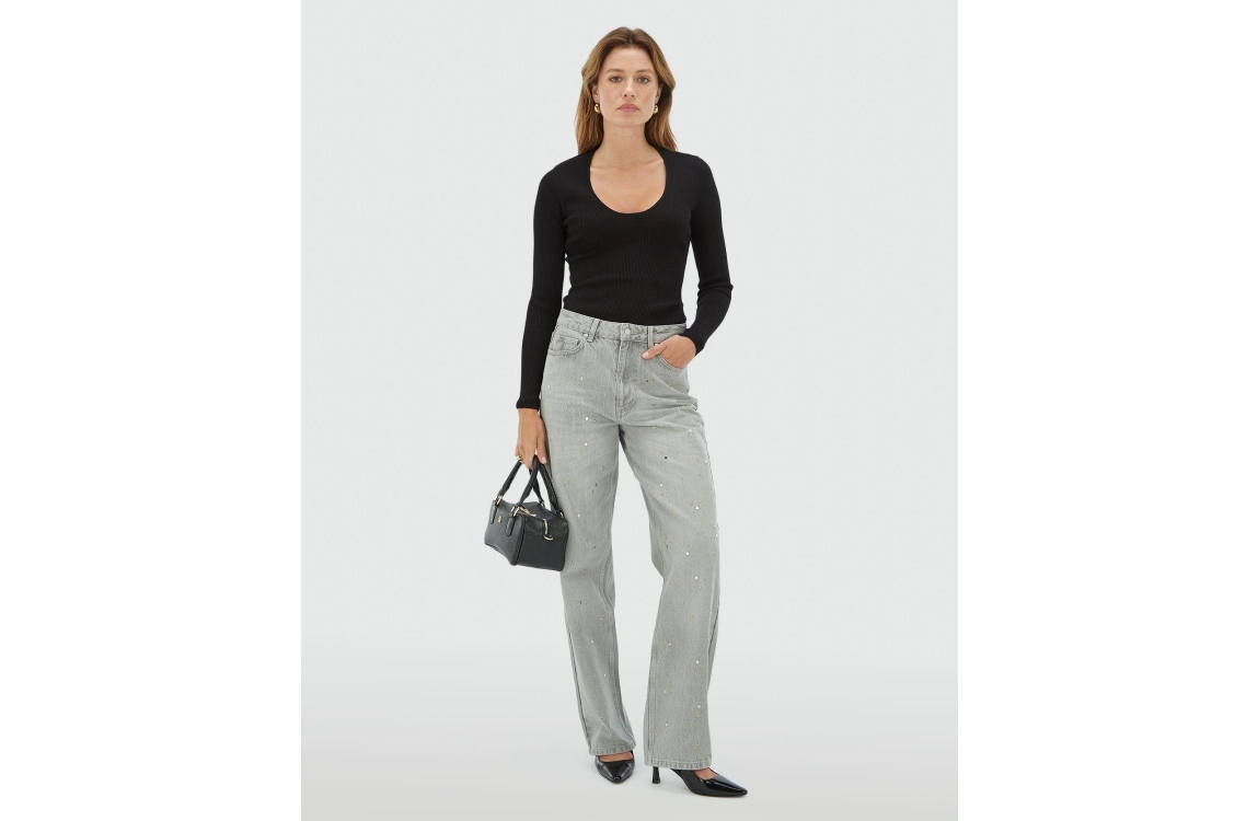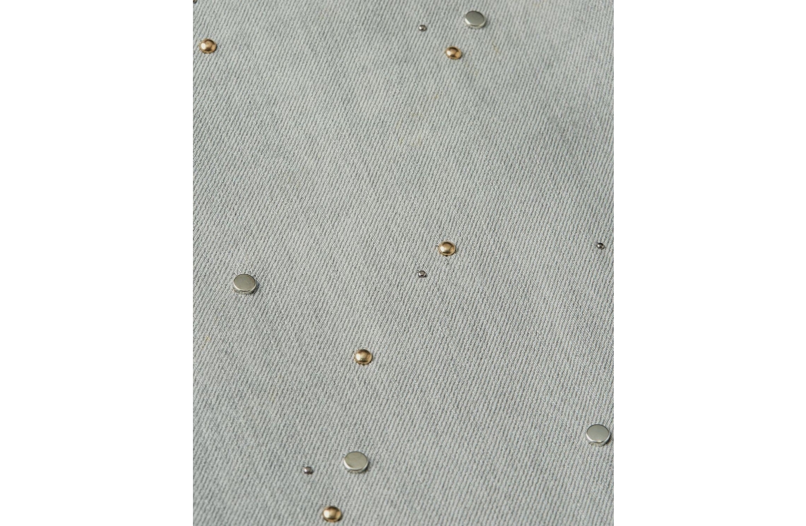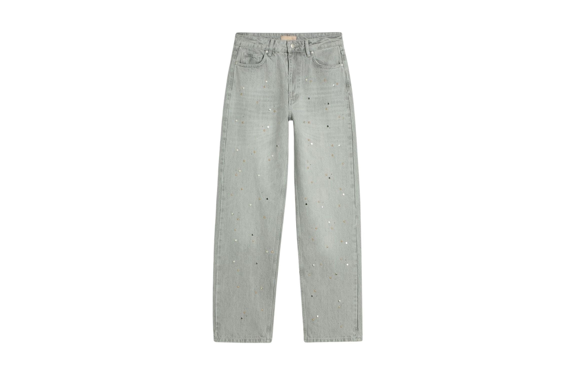 Josh V PHEBE 216 grey denim. Dit rechtvallende model sluit door middel van een knoop en een rits. Deze grijze denim jeans van Josh V is bewerkt met zilveren en gouden studs, riemlusjes en verschillende steekzakken. De jeans is een mid rise model.