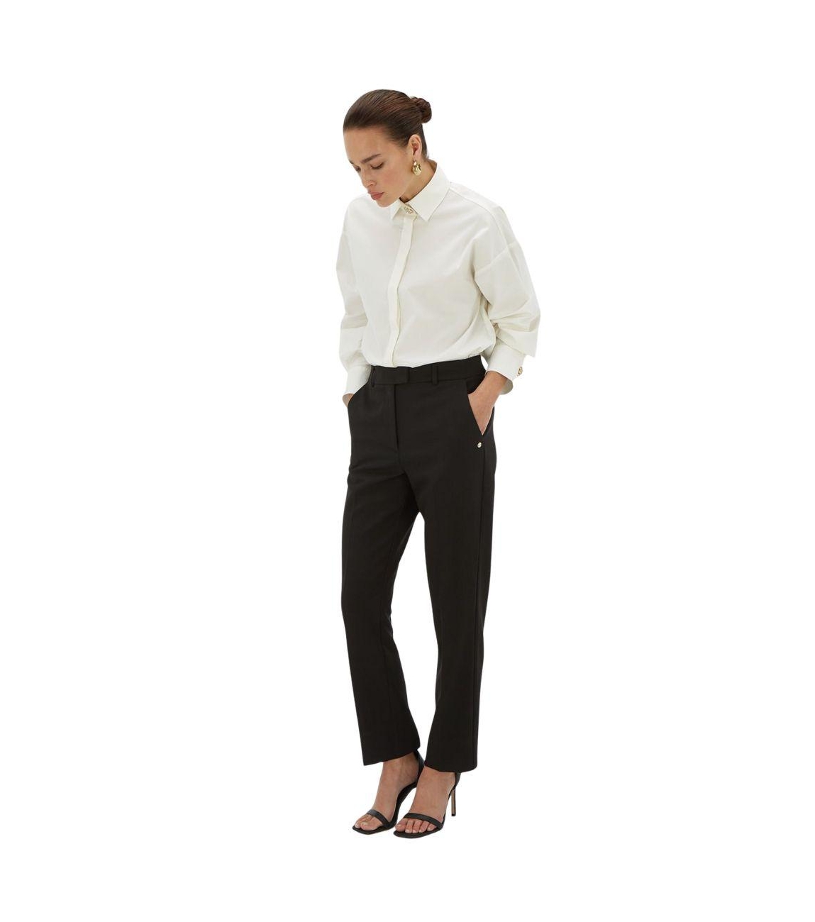 Josh V pantalon Ryker JV-2511-0601 300. Dit mid rise straight fit model sluit door middel van schuifknopen en een ritssluiting. Deze zwarte pantalon van Josh V is voorzien van twee steekzakken aan de voorzijde en twee paspelzakken aan de achterzijde. Het model is gedetailleerd met een plooi over de lengte, bevat stretchkwaliteit en is voorzien van ceintuurlussen.
