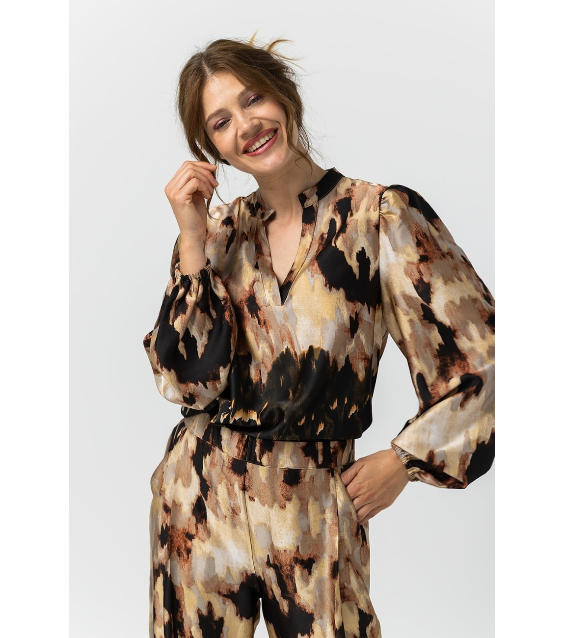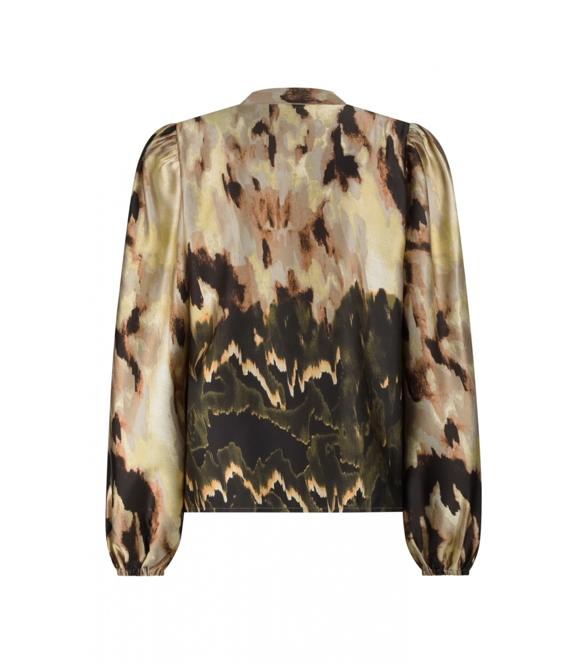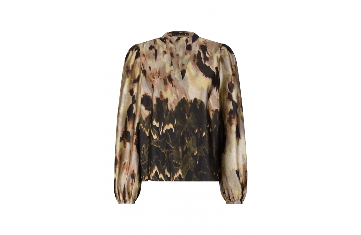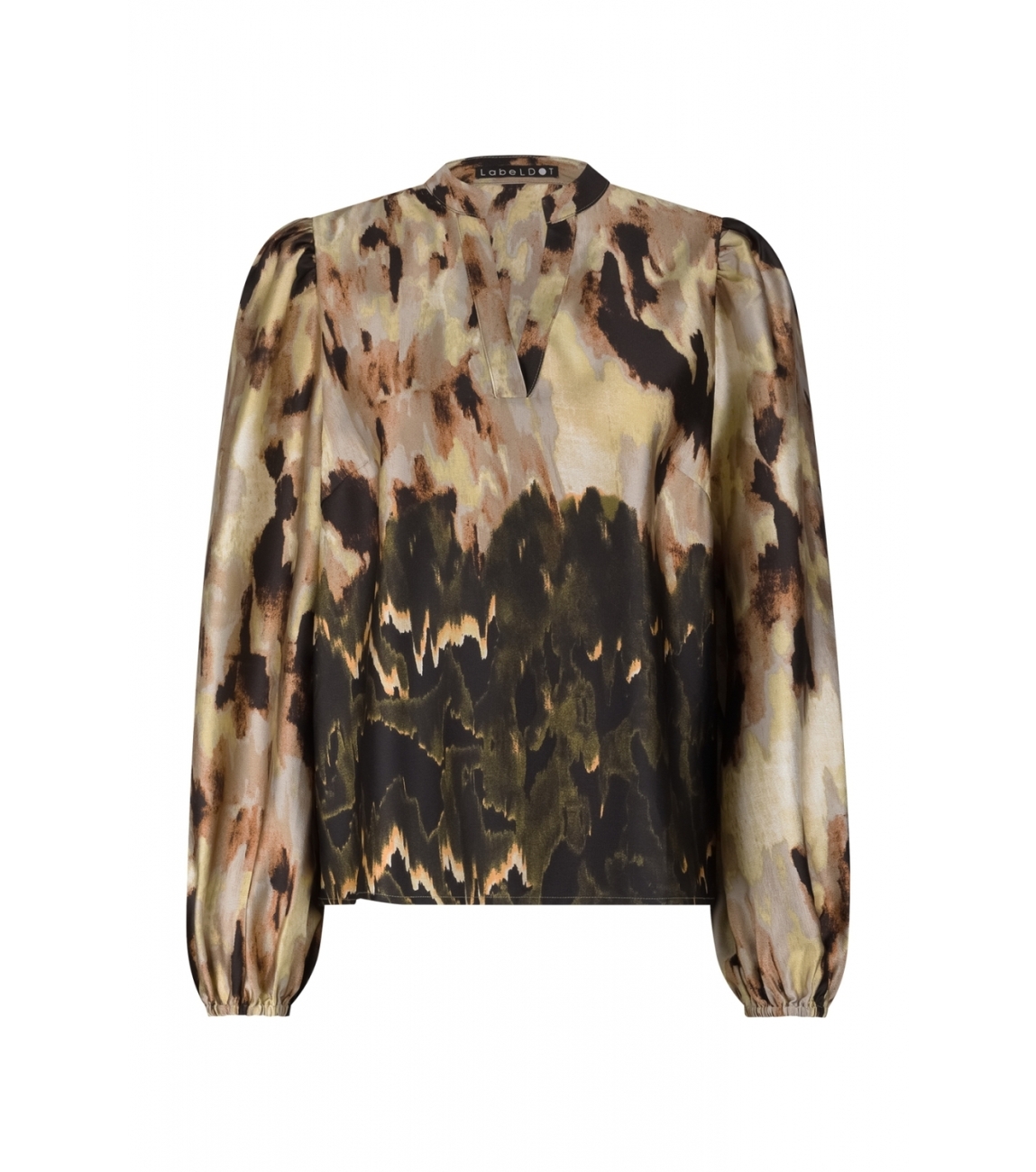 Label Dot blouse Adoree 2521011. Dit rechtvallend model is voorzien van een ronde hals met v-inkeping en heeft lange mouwen. Deze multi colour blouse van Label Dot is all-over bewerkt met een print en is glanzend uitgevoerd.
